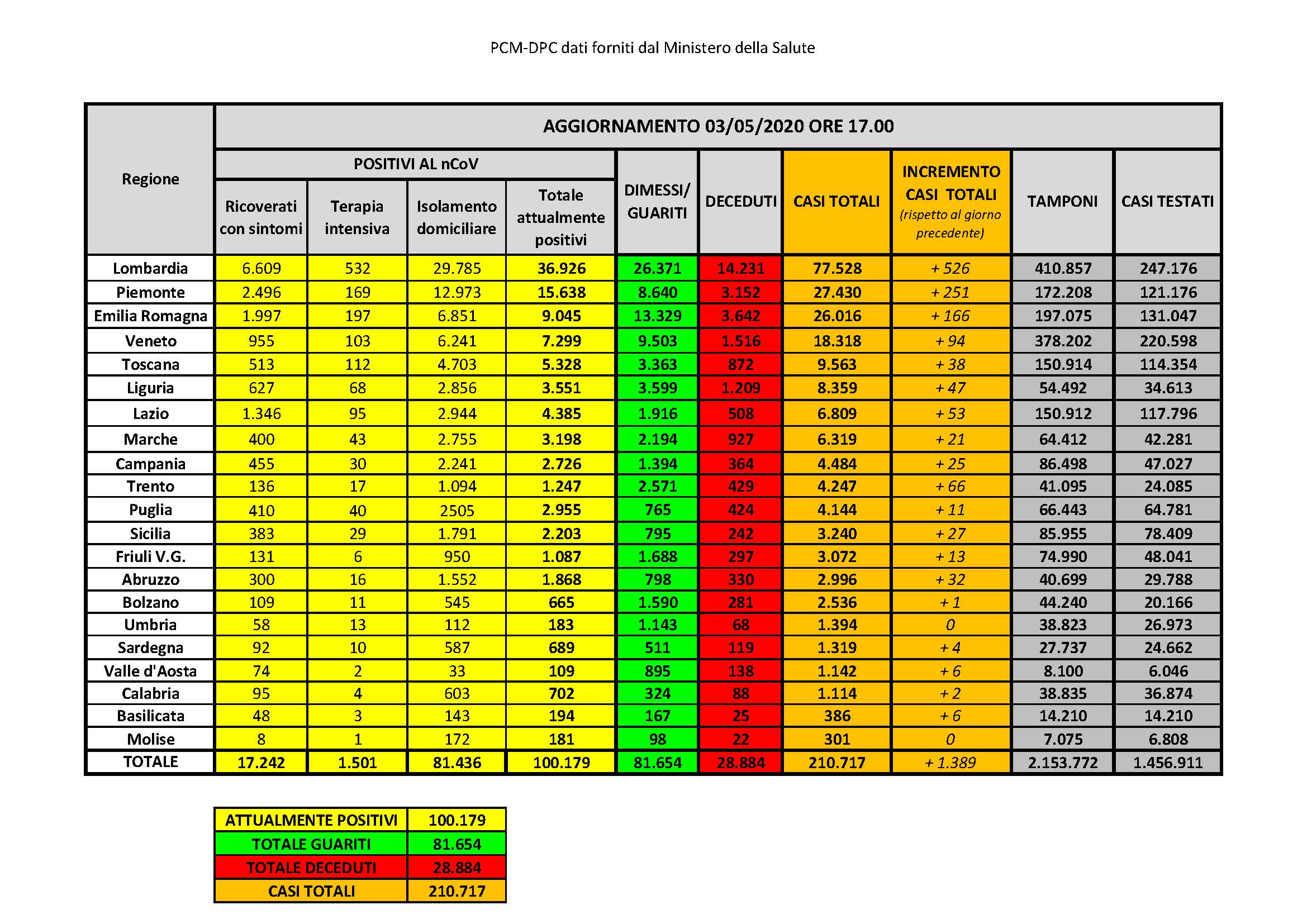 Il numero totale di casi di positività accertati in Sardegna dall’inizio dell’emergenza sale così a 1.319. È quanto rilevato dall’Unità di crisi regionale nell’ultimo aggiornamento. In totale nell’Isola sono stati eseguiti 27.737 test. I pazienti ricoverati in ospedale sono in tutto 102, 92 ricoverati con sintomi, 10 in terapia intensiva, mentre 587 sono le persone in isolamento domiciliare. Il dato progressivo dei casi positivi comprende 416 pazienti guariti (+37 rispetto al dato precedente), più altri 95 guariti clinicamente. Gli attualmente positivi sono 689. Resta invariato il numero delle vittime (119).
