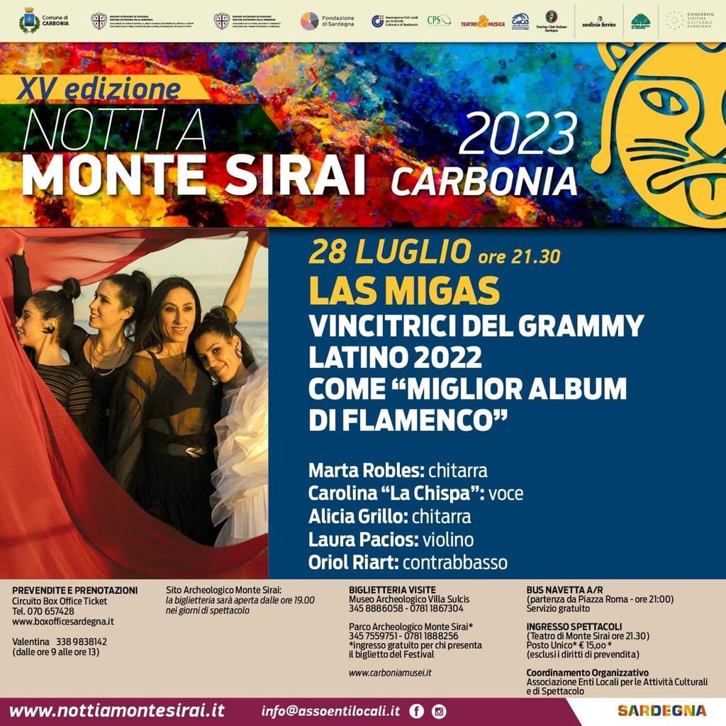 A Carbonia arriva uno dei gruppi di flamenco al femminile più conosciuti al mondo: le “Las Migas”, capaci di vincere l’anno scorso un Grammy Latino nella categoria ‘miglior album di flamenco’.