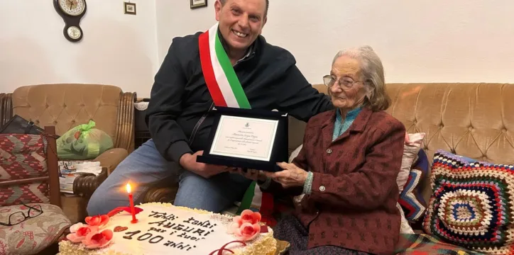 Calasetta in festa per i 100 anni di nonna Antonietta Sorgia Biggio. Questa sera il sindaco Antonello Puggioni gli ha portato gli auguri dell'Amministrazione comunale per il raggiungimento dello splendido traguardo dei 100 anni. Antonietta Sorgia Biggio ha due figli maschi, Giampaolo ed Ernest0,