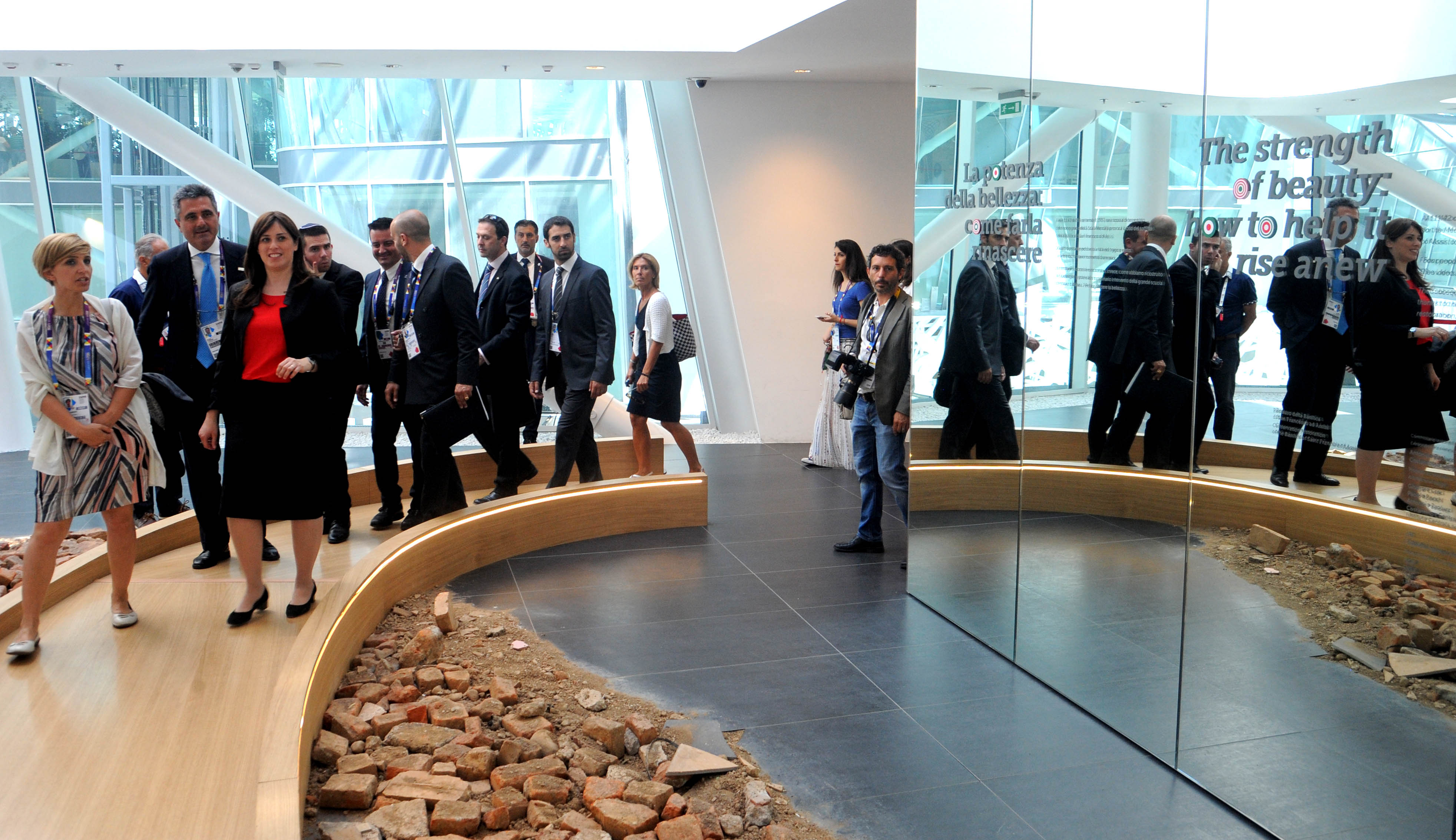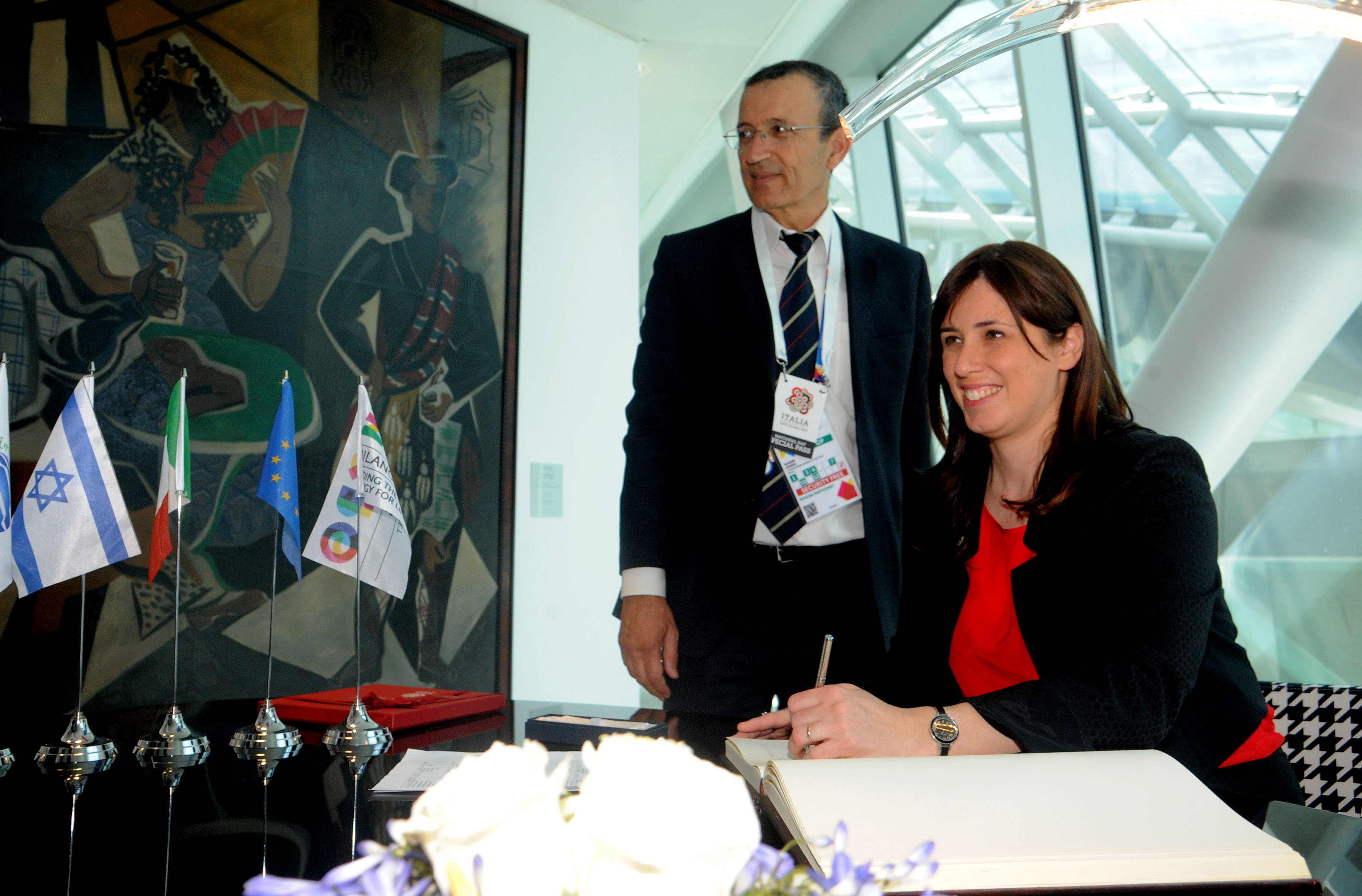 Successivamente, ecco la cerimonia ufficiale dell’alzabandiera e l’esecuzione degli inni, alla quale hanno partecipato il vice ministro degli Esteri dello Stato di Israele, Tzipora Hotovely, e il Commissario Generale di Expo Milano 2015, Bruno Pasquino. Ospiti in platea, l’ambasciatore Naor Gilon, il commissario del Padiglione israeliano Elazar Cohen e l’ex sindaco di Milano, Letizia Moratti.