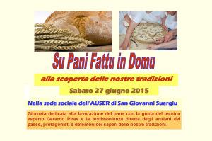 Sabato 27 giugno la sede sociale dell’Auser di San Giovanni Suergiu ospiterà “Su pani fattu in domu – Alla scoperta delle nostre tradizioni”.