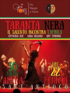 Giovedì 28, all’Arena Fenicia, è in programma lo spettacolo “Soglie” e sino a sabato 30 lo spettacolo “Taranta Nera. Il Salento incontra l’Africa” per un fine settimana all’insegna dello svago, della convivialità e della riflessione.