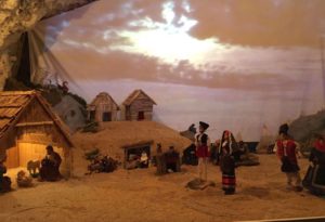 Al San Giovanni di Dio, presepe in grotta ambientato al Poetto, con i personaggi in costume sardo.