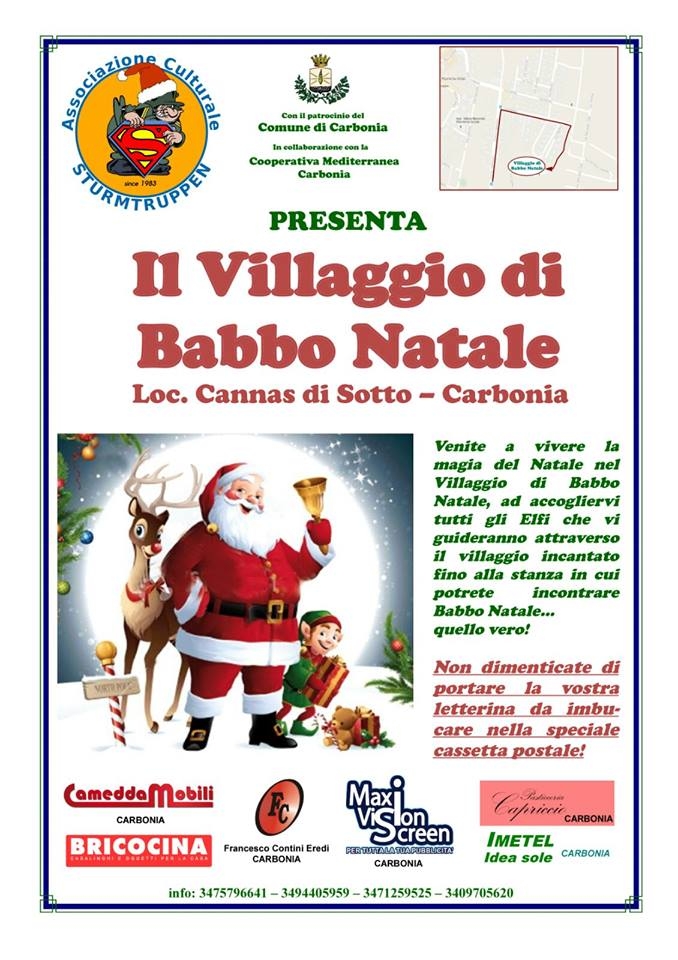 Giovedì 8 dicembre, dalle ore 9.30, verrà inaugurato il Villaggio di Babbo Natale presso il Parco Urbano “Sa Grutta” con Necropoli Ipogeica di Cannas di Sotto.