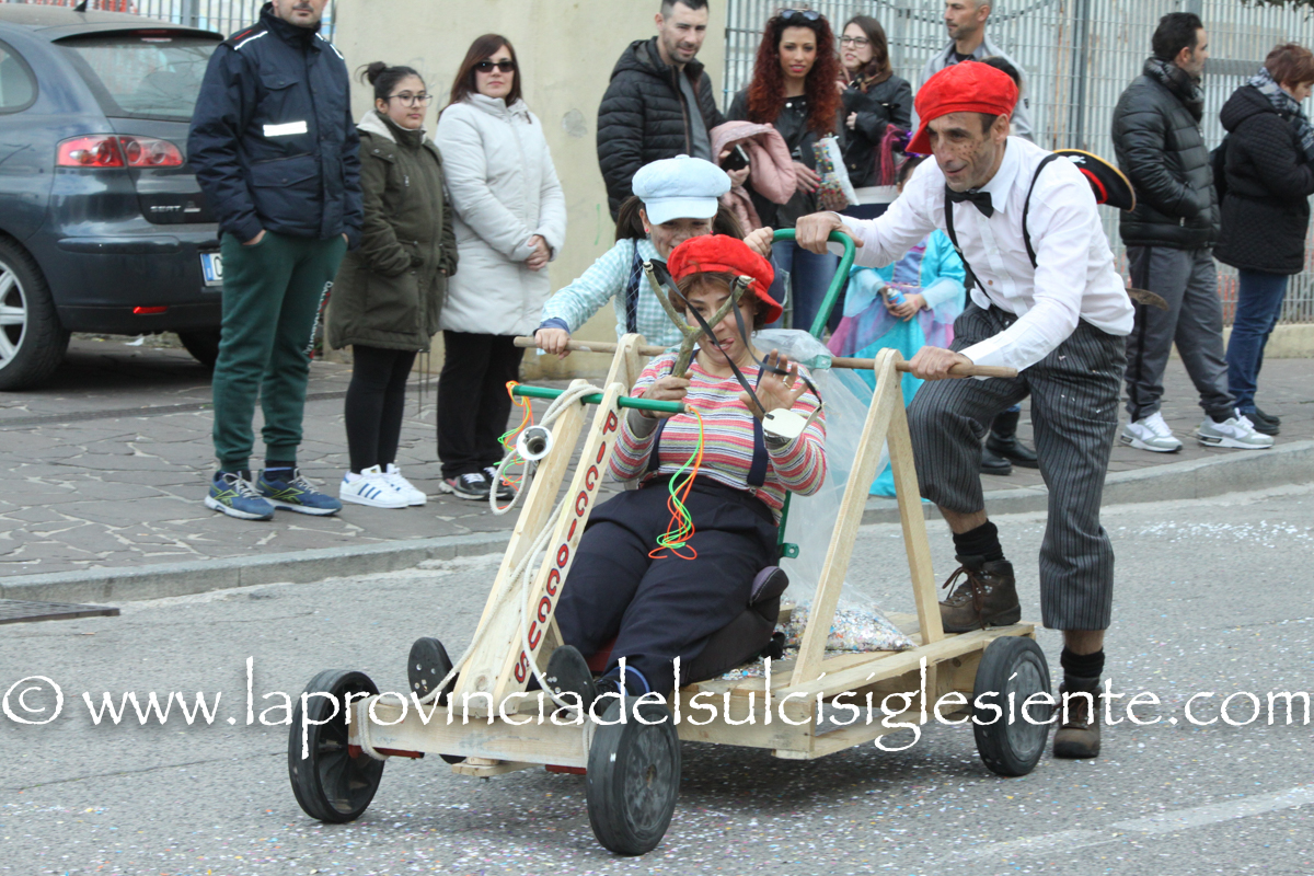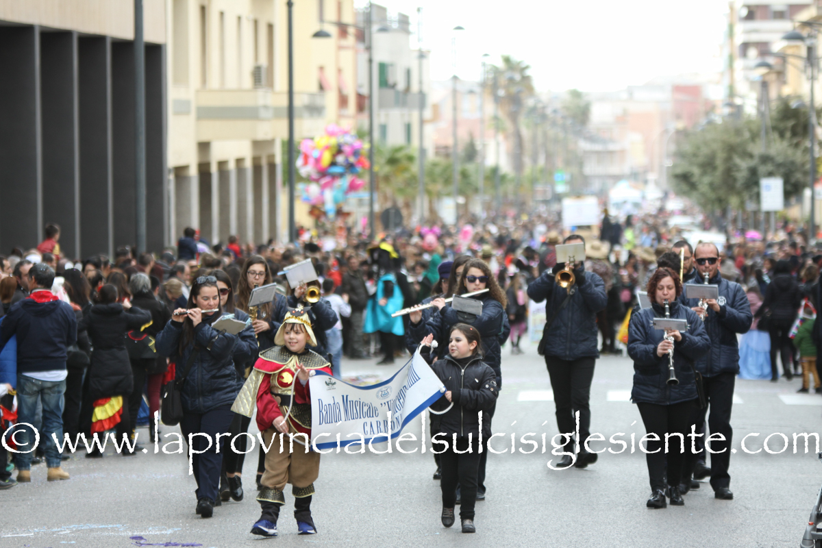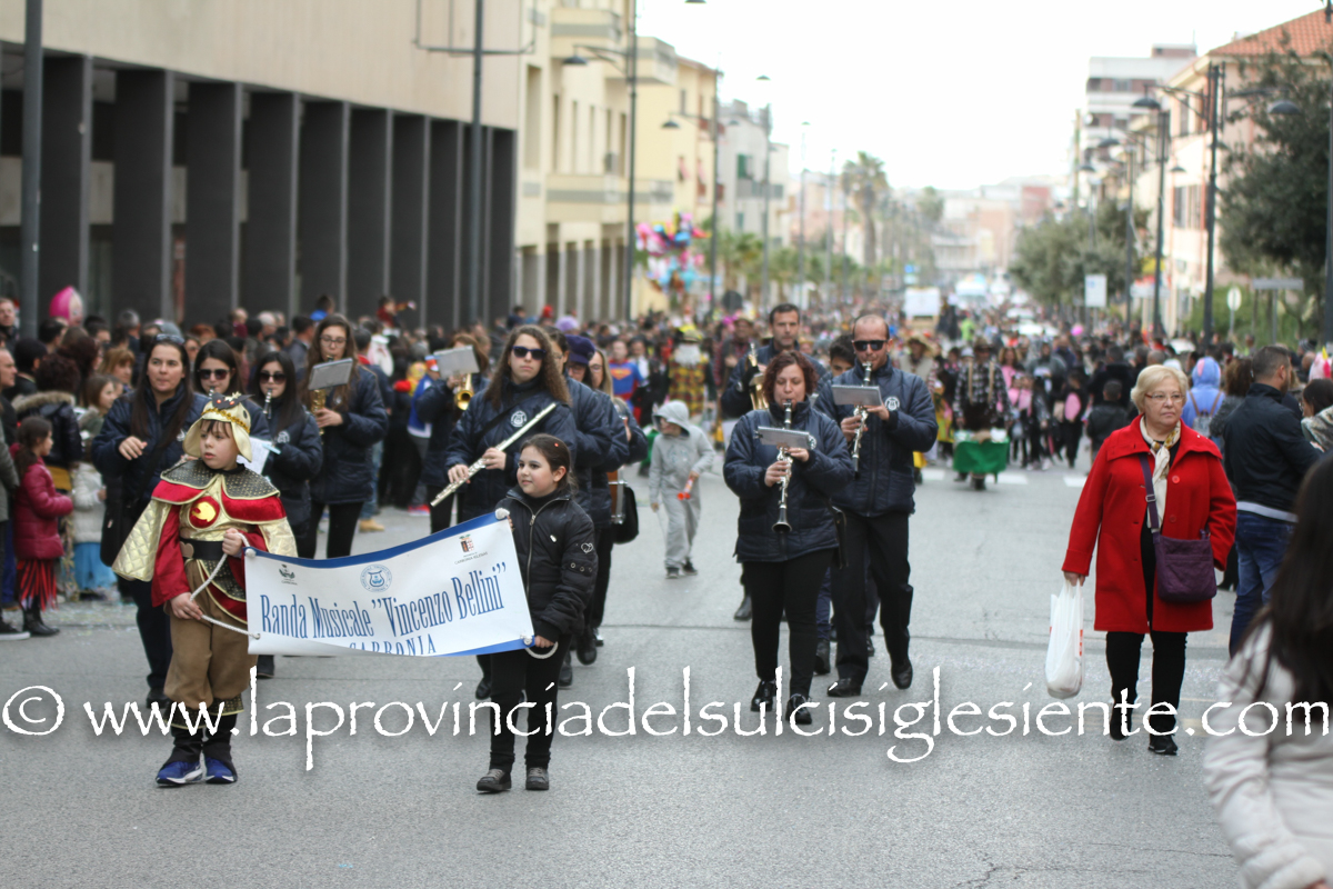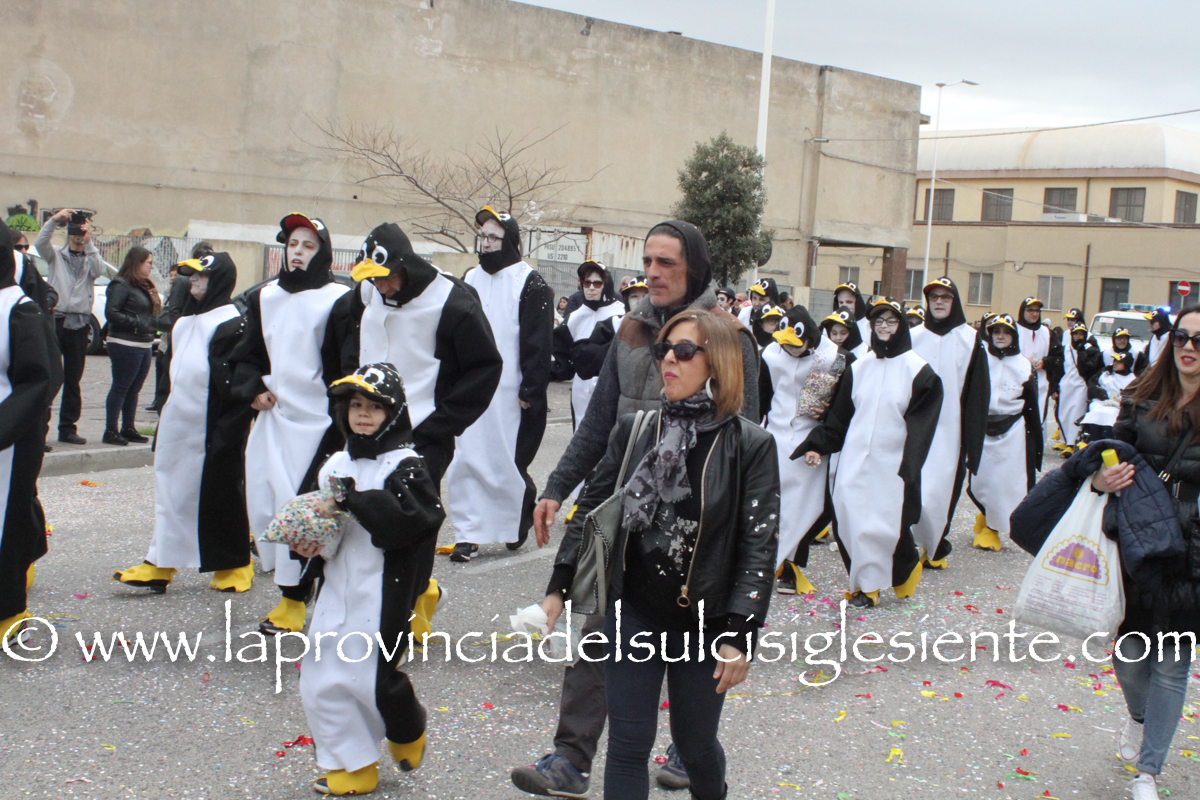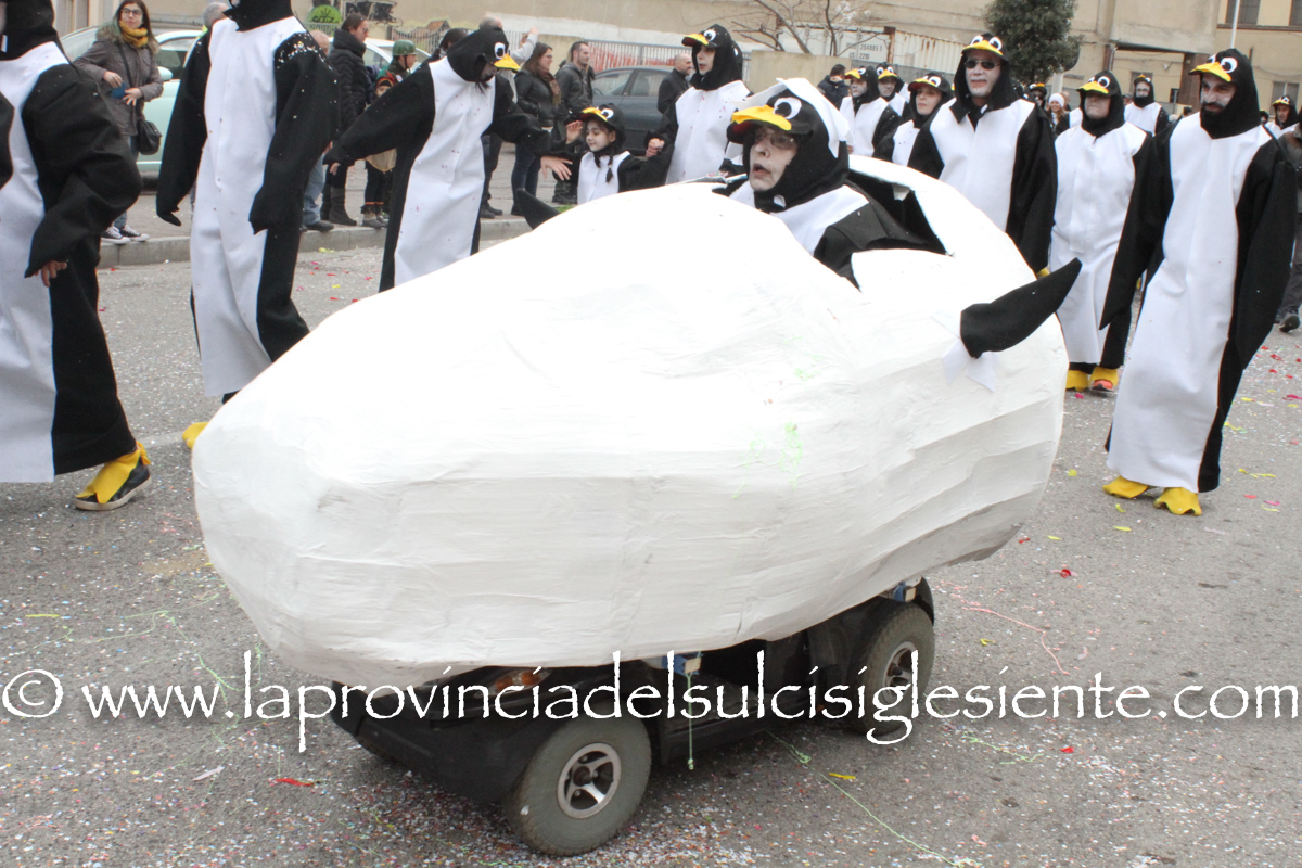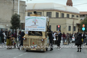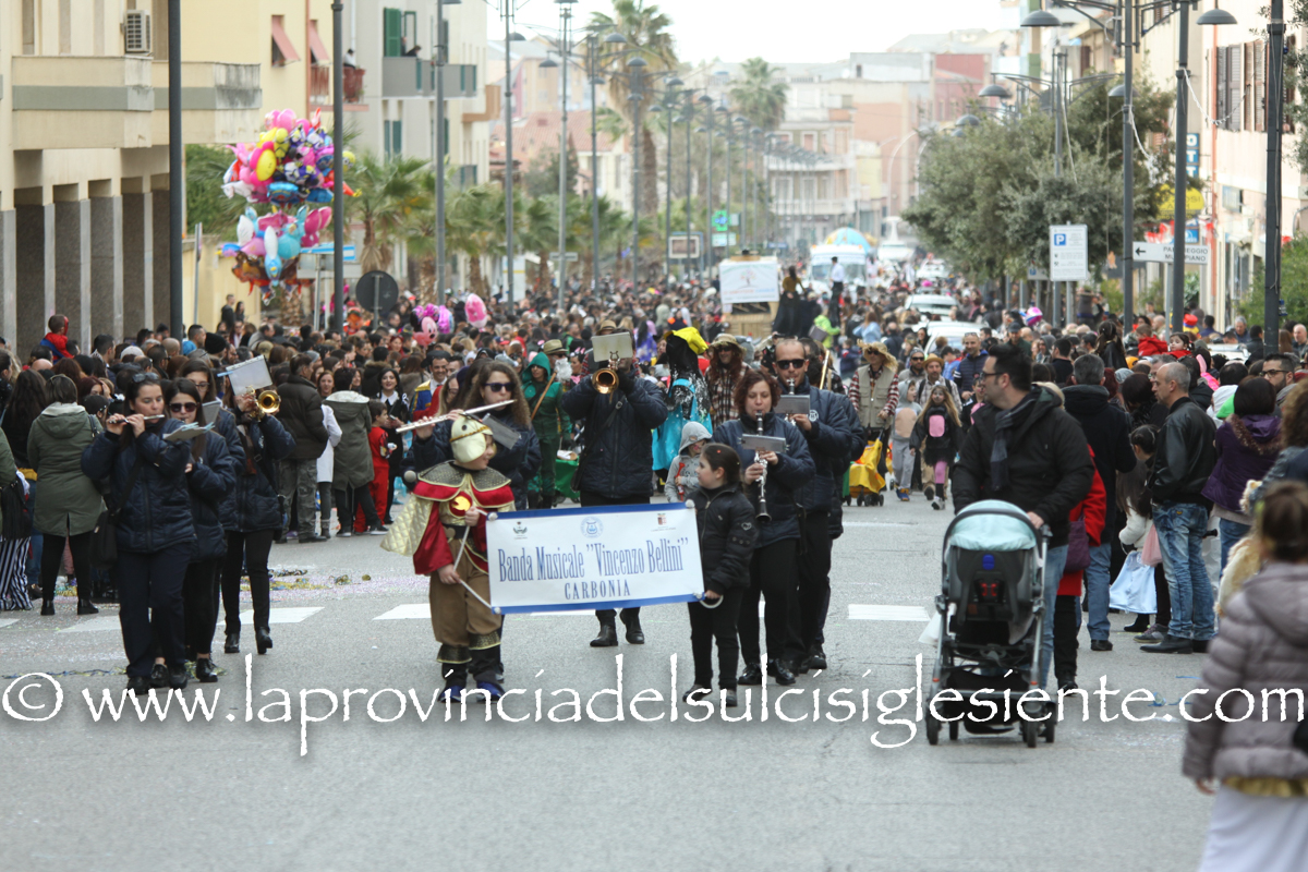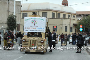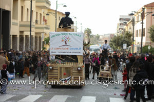 Pochi carri ma ugualmente grande festa, a Carbonia, per il Carnevale 2017. La crisi si è fatta sentire come e più di un anno fa e sono state solo otto le adesioni all’invito degli organizzatori, di carri e gruppi a piedi che si sono dati appuntamento in Piazza Ciusa per la partenza, avvenuta poco dopo le 15.00, con la partecipazione della banda musicale Vincenzo Bellini, numericamente penalizzata… dall’influenza.