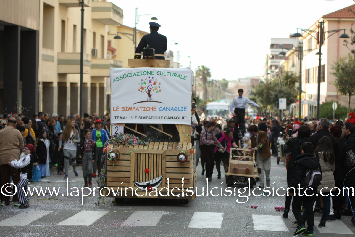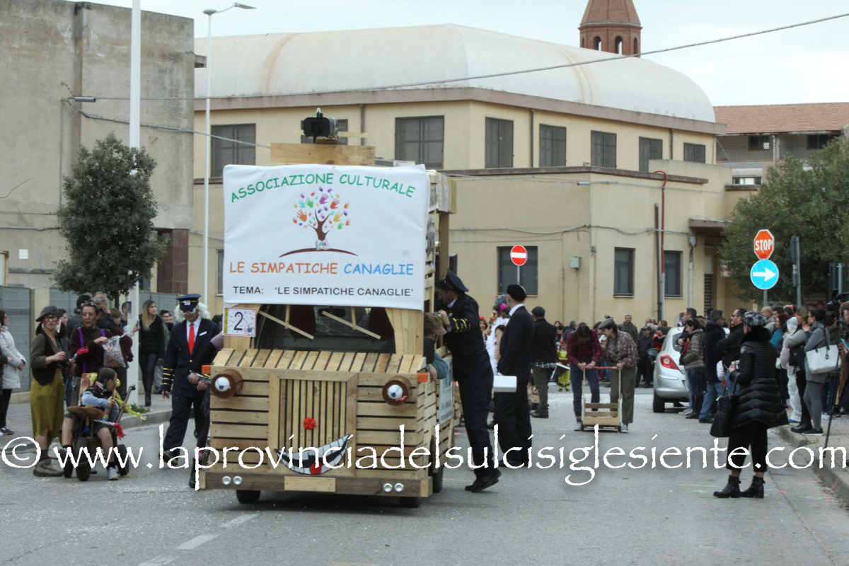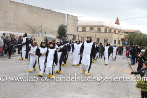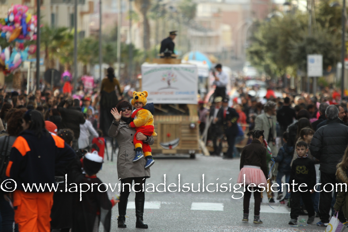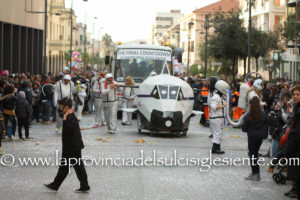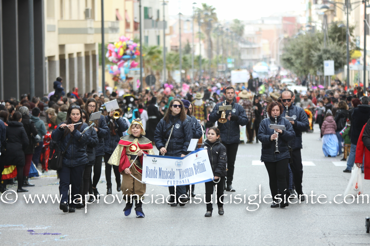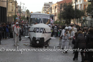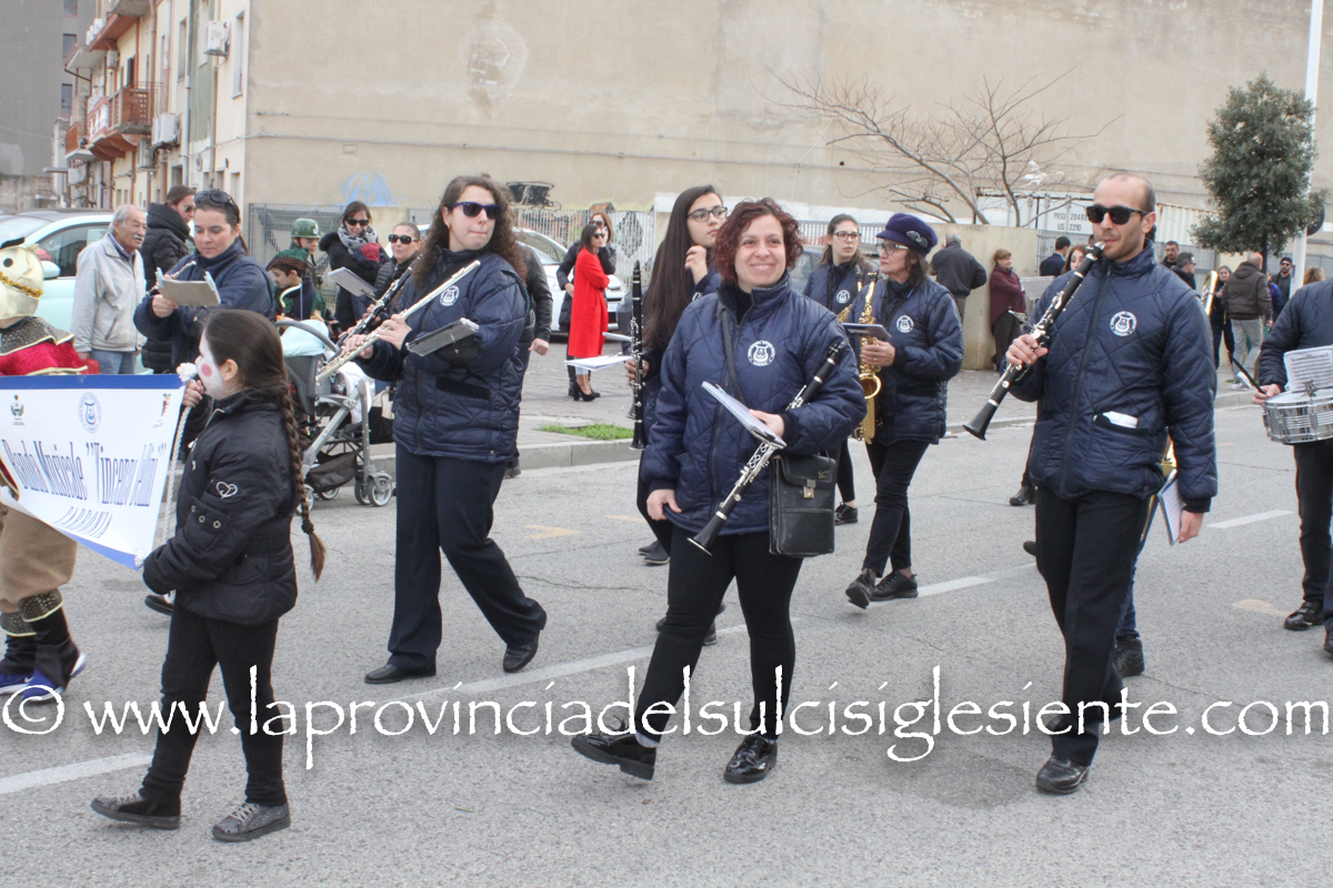 Pochi carri ma ugualmente grande festa, a Carbonia, per il Carnevale 2017. La crisi si è fatta sentire come e più di un anno fa e sono state solo otto le adesioni all’invito degli organizzatori, di carri e gruppi a piedi che si sono dati appuntamento in Piazza Ciusa per la partenza, avvenuta poco dopo le 15.00, con la partecipazione della banda musicale Vincenzo Bellini, numericamente penalizzata… dall’influenza.