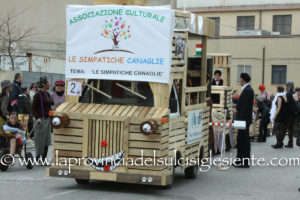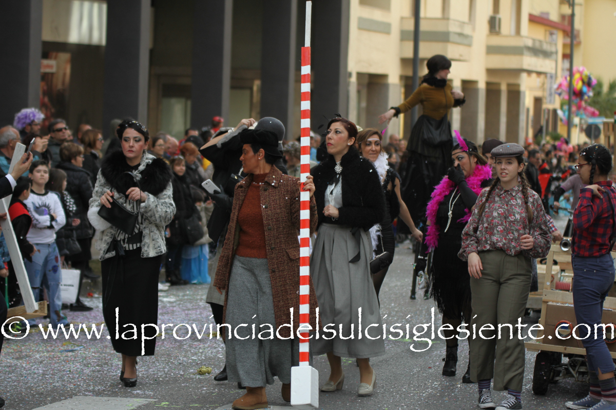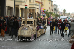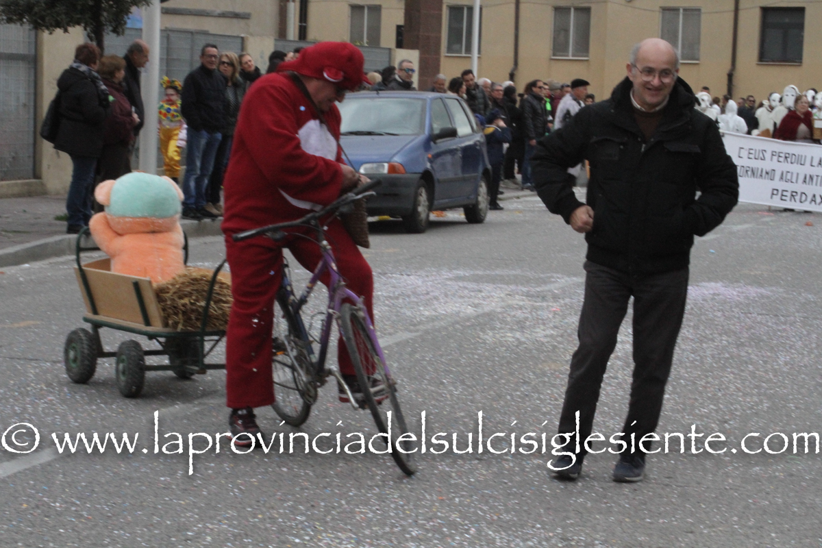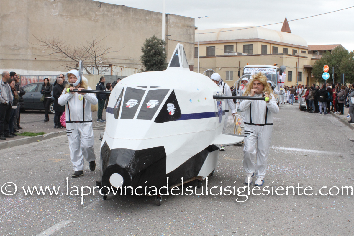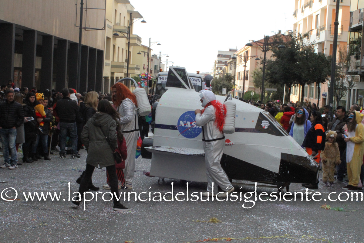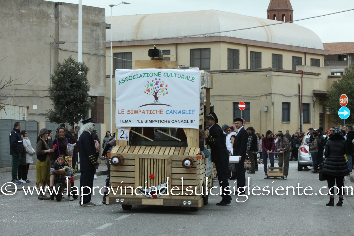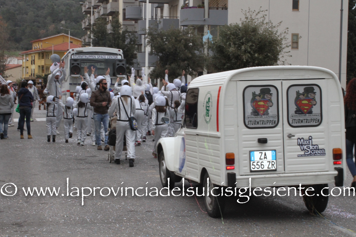 Pochi carri ma ugualmente grande festa, a Carbonia, per il Carnevale 2017. La crisi si è fatta sentire come e più di un anno fa e sono state solo otto le adesioni all’invito degli organizzatori, di carri e gruppi a piedi che si sono dati appuntamento in Piazza Ciusa per la partenza, avvenuta poco dopo le 15.00, con la partecipazione della banda musicale Vincenzo Bellini, numericamente penalizzata… dall’influenza.