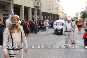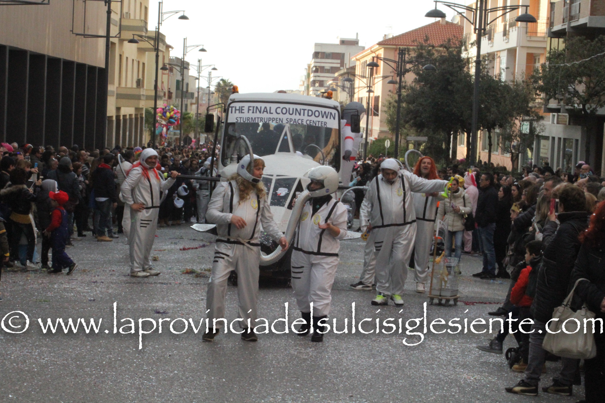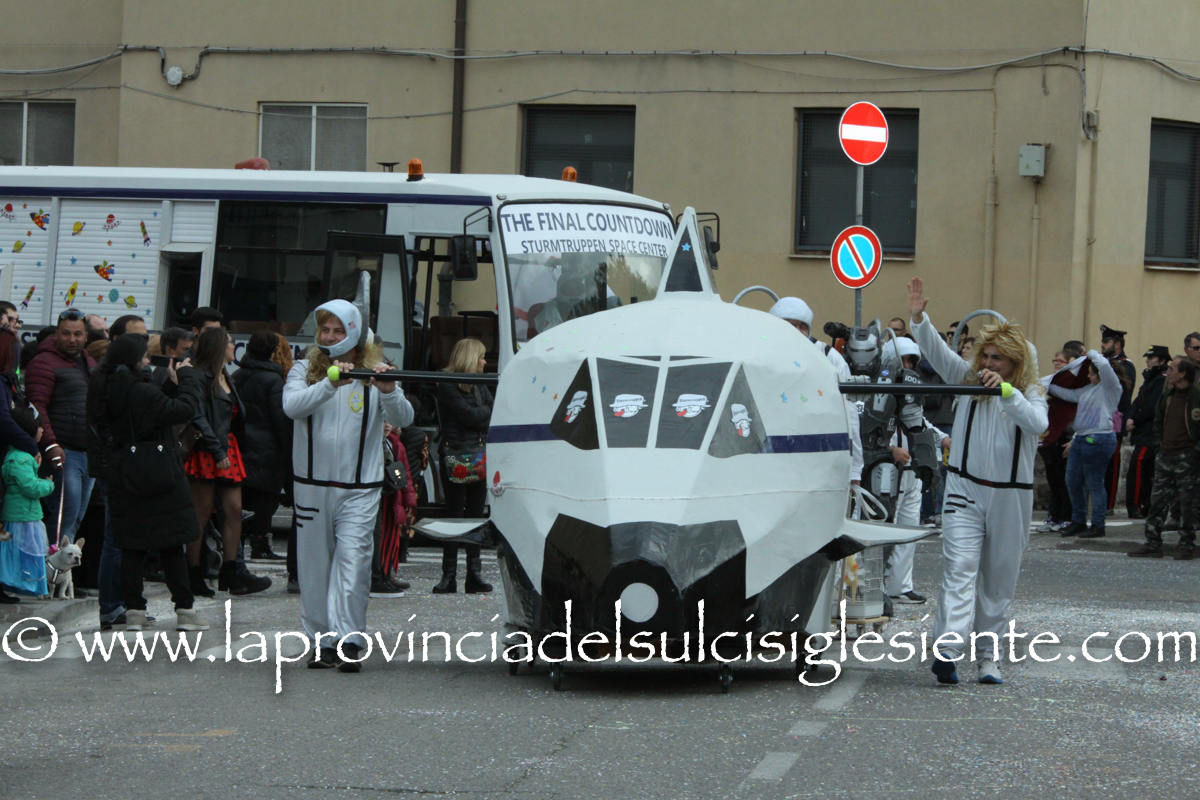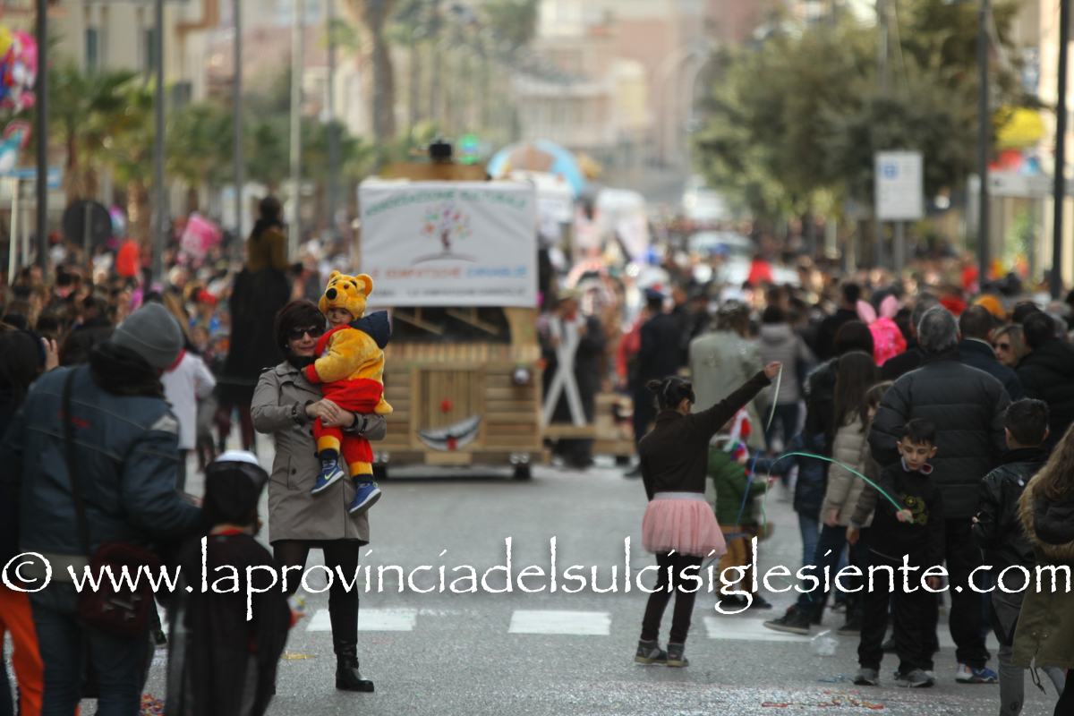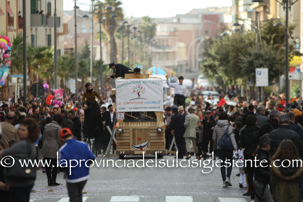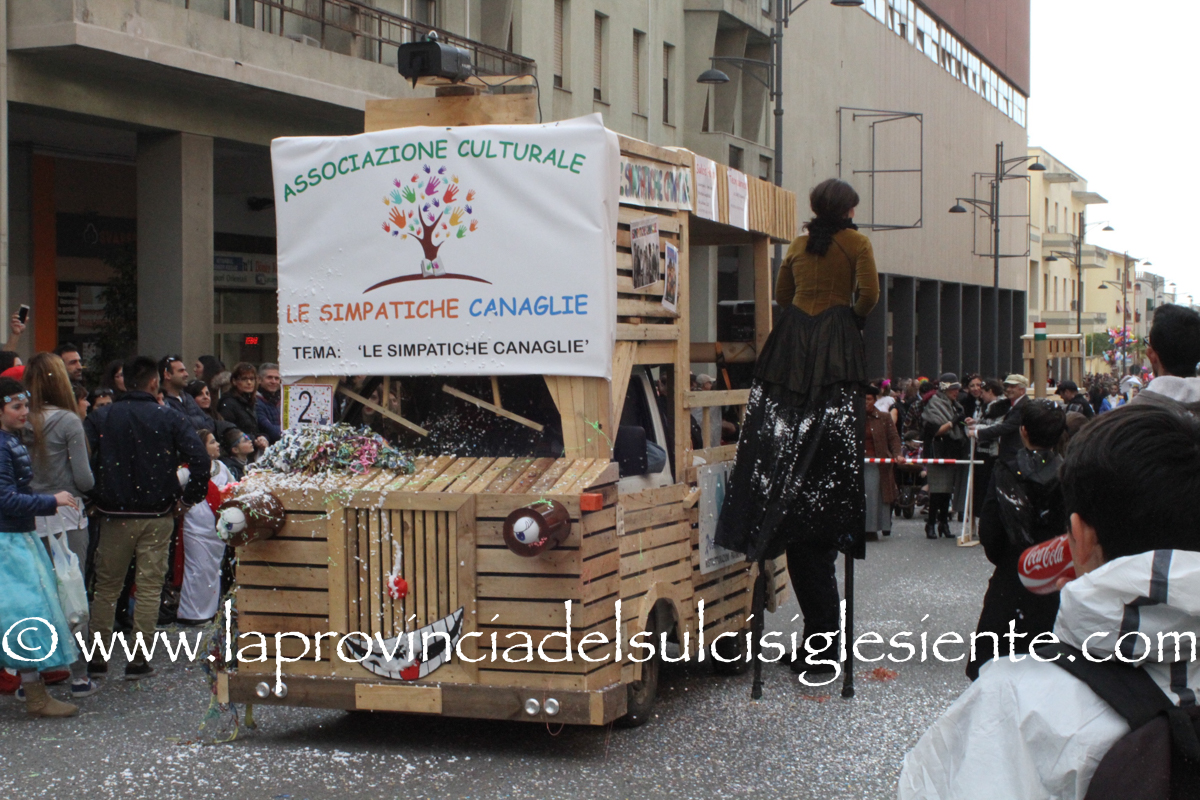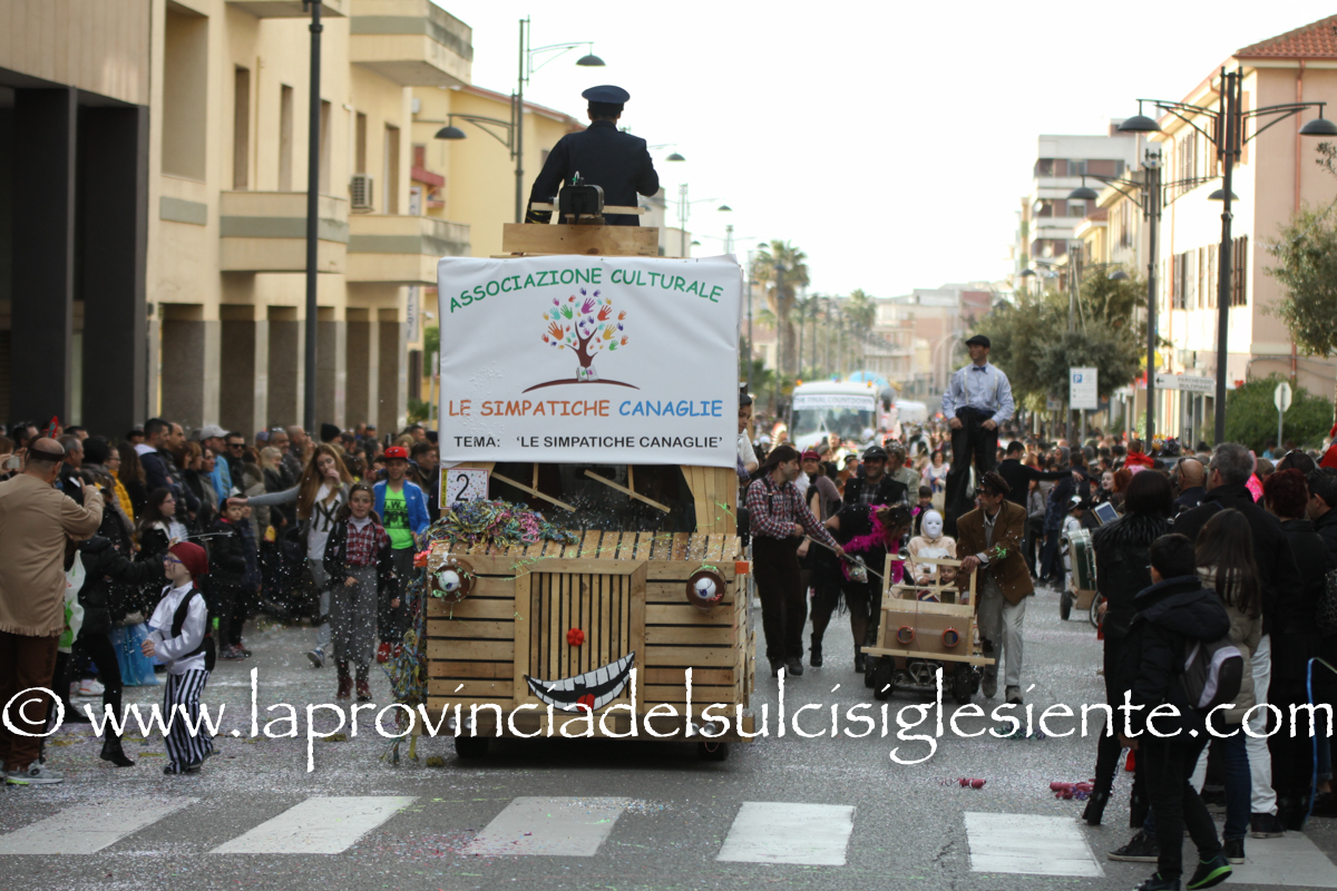Pochi carri ma ugualmente grande festa, a Carbonia, per il Carnevale 2017. La crisi si è fatta sentire come e più di un anno fa e sono state solo otto le adesioni all’invito degli organizzatori, di carri e gruppi a piedi che si sono dati appuntamento in Piazza Ciusa per la partenza, avvenuta poco dopo le 15.00, con la partecipazione della banda musicale Vincenzo Bellini, numericamente penalizzata… dall’influenza.