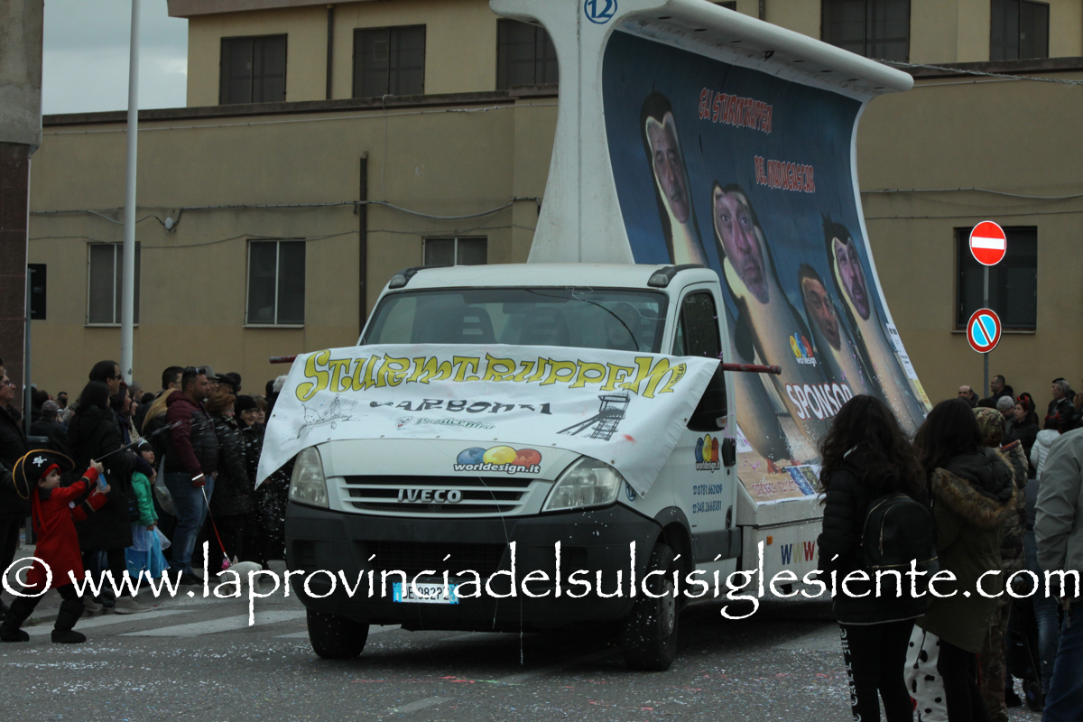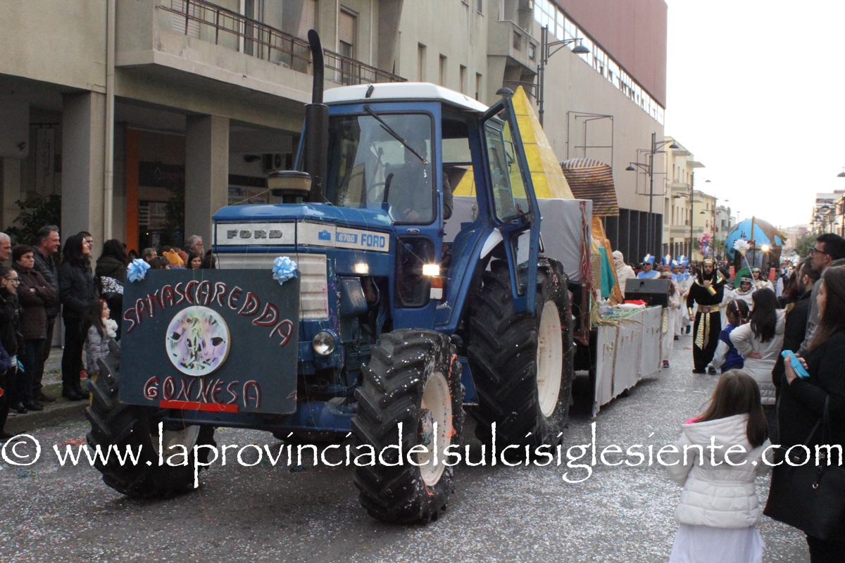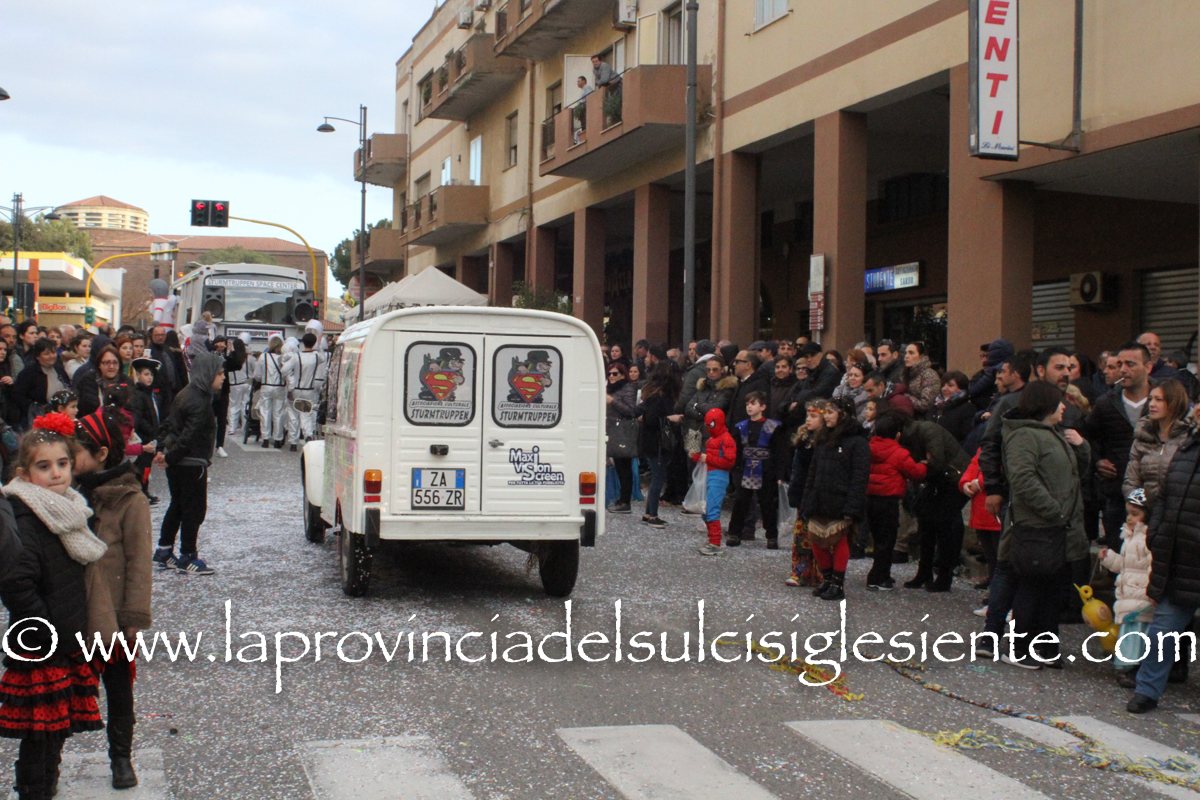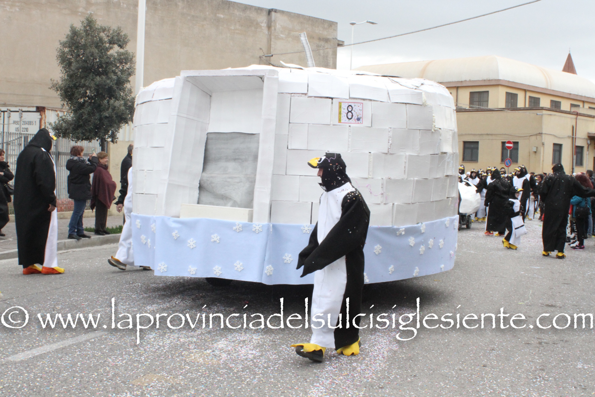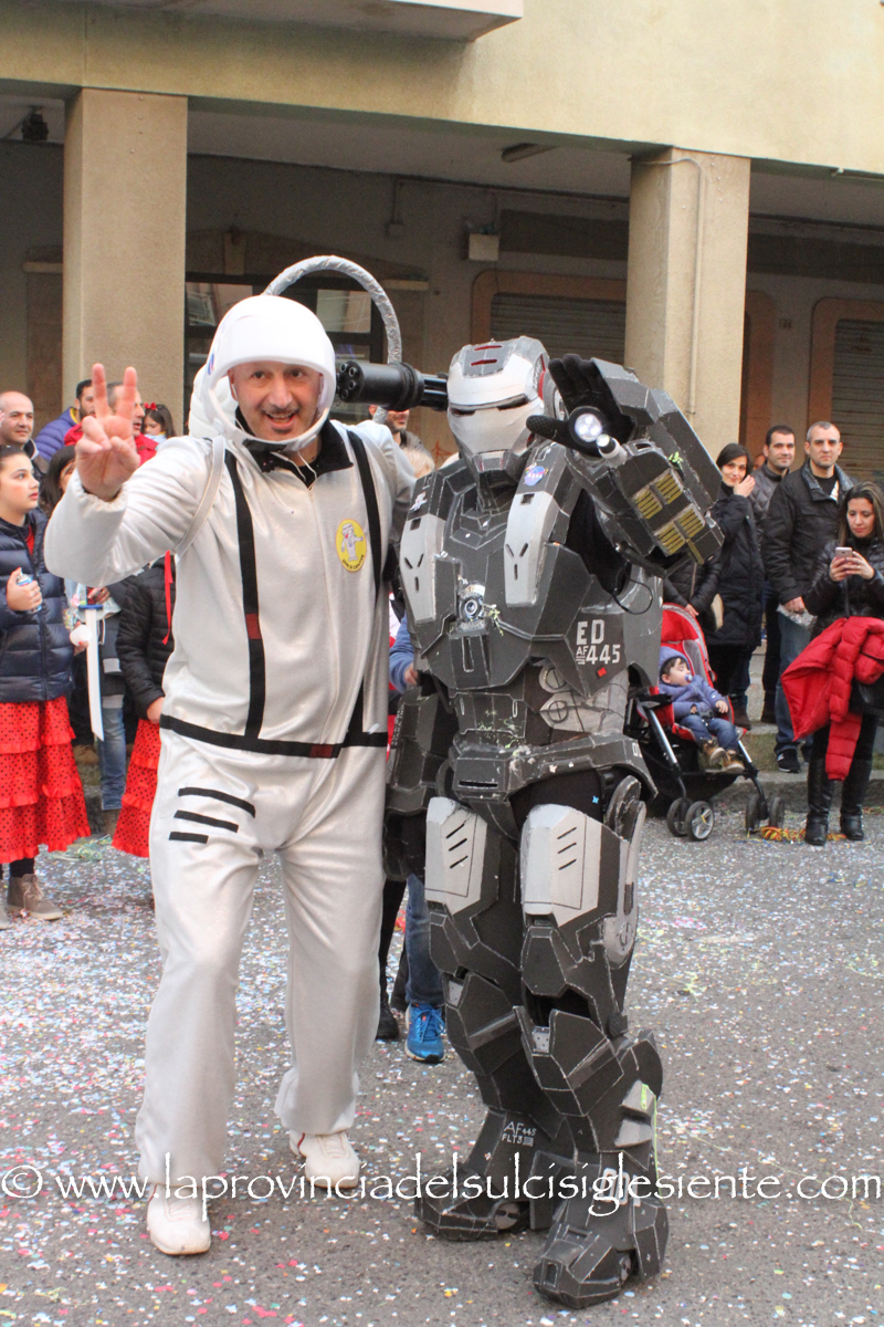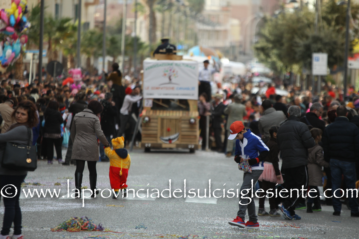 Pochi carri ma ugualmente grande festa, a Carbonia, per il Carnevale 2017. La crisi si è fatta sentire come e più di un anno fa e sono state solo otto le adesioni all’invito degli organizzatori, di carri e gruppi a piedi che si sono dati appuntamento in Piazza Ciusa per la partenza, avvenuta poco dopo le 15.00, con la partecipazione della banda musicale Vincenzo Bellini, numericamente penalizzata… dall’influenza.