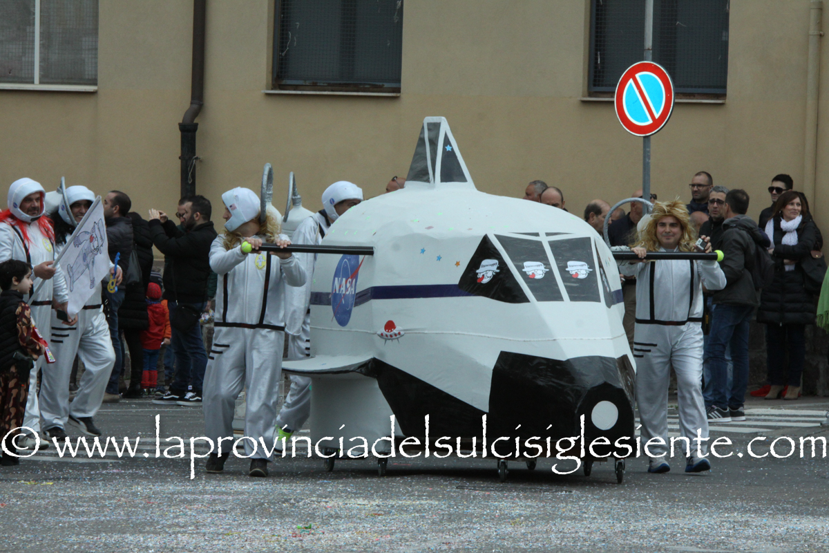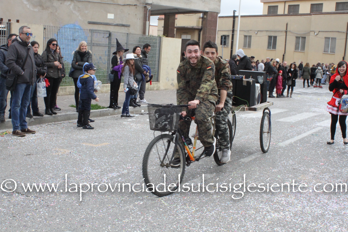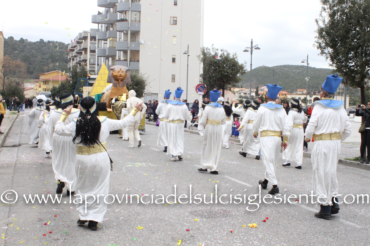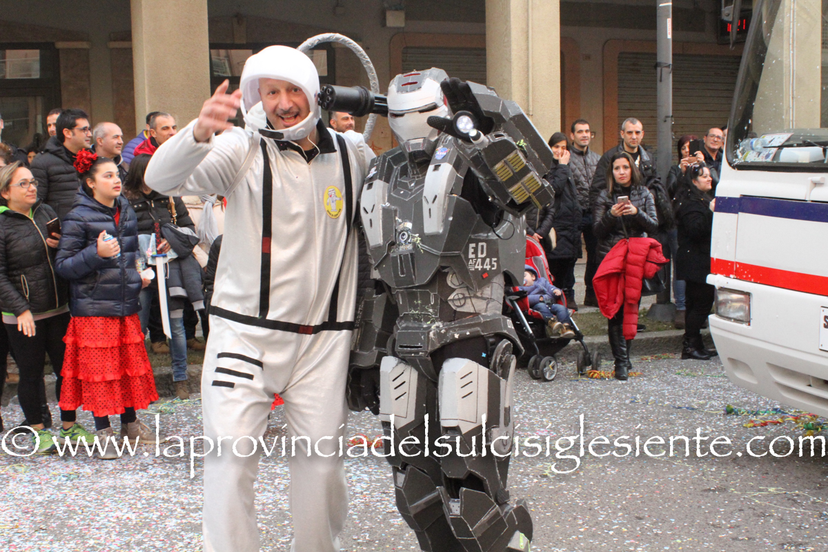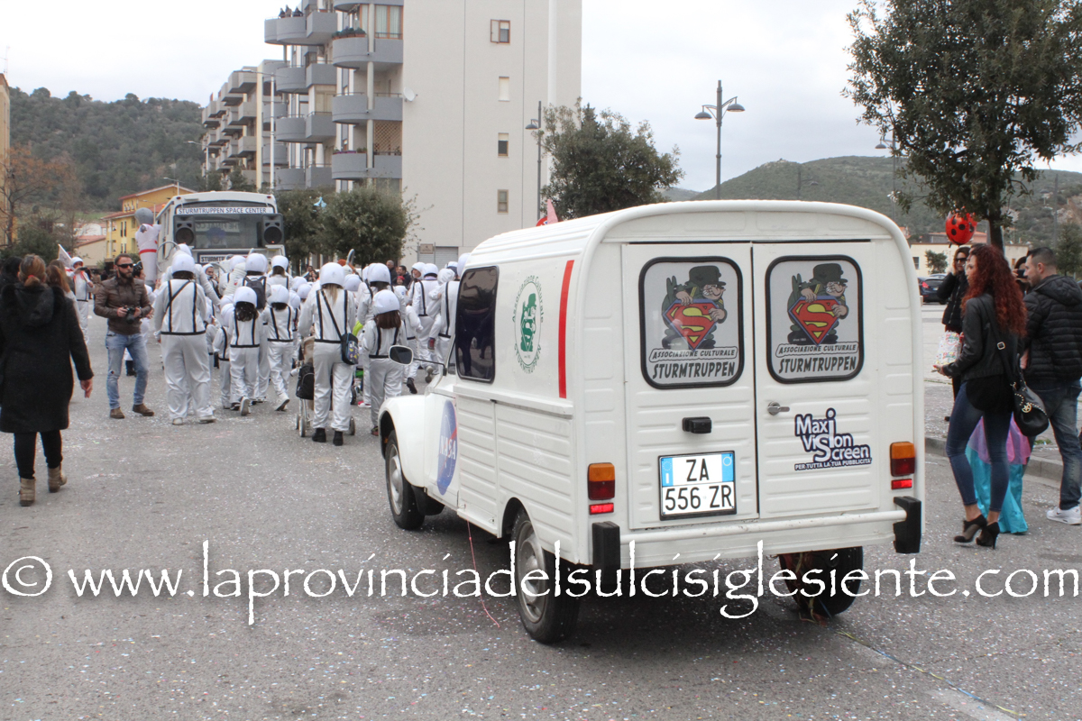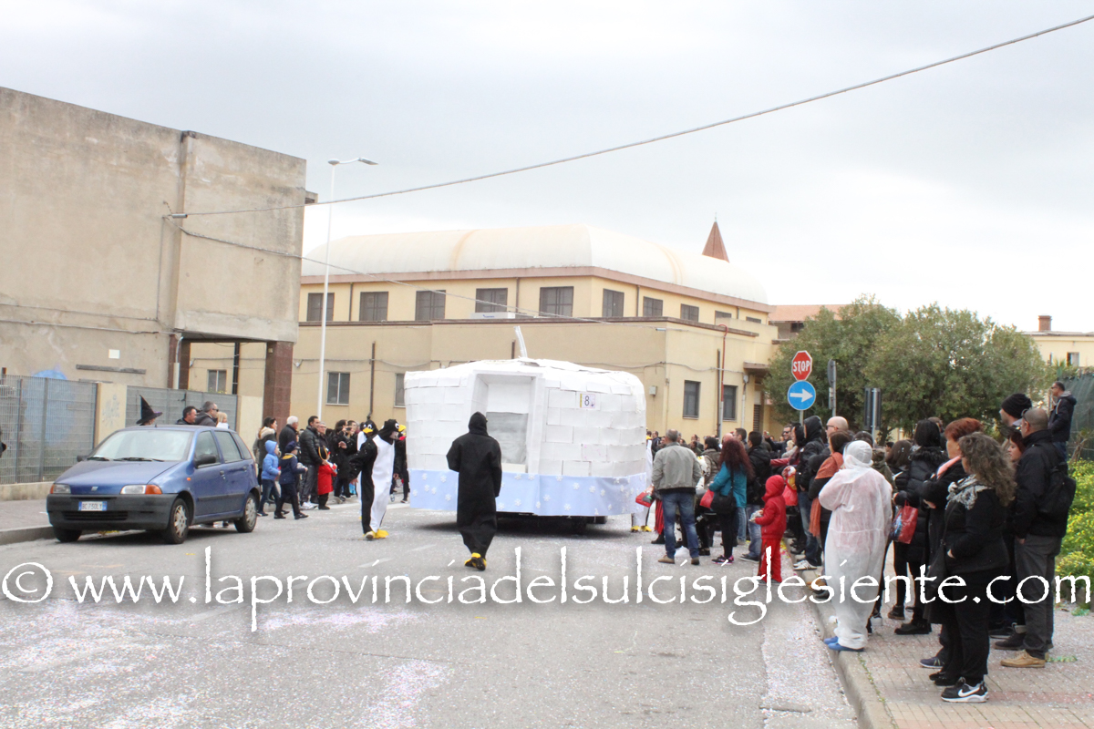Pochi carri ma ugualmente grande festa, a Carbonia, per il Carnevale 2017. La crisi si è fatta sentire come e più di un anno fa e sono state solo otto le adesioni all’invito degli organizzatori, di carri e gruppi a piedi che si sono dati appuntamento in Piazza Ciusa per la partenza, avvenuta poco dopo le 15.00, con la partecipazione della banda musicale Vincenzo Bellini, numericamente penalizzata… dall’influenza.