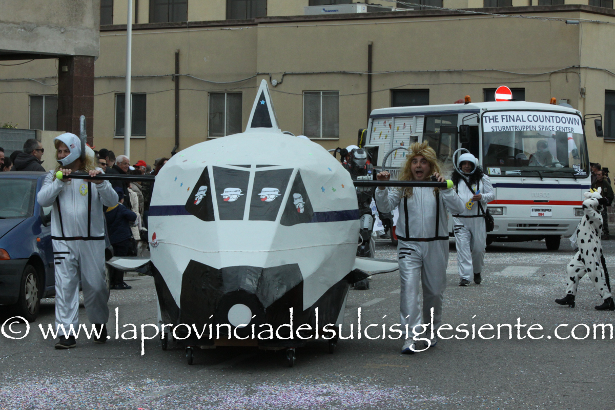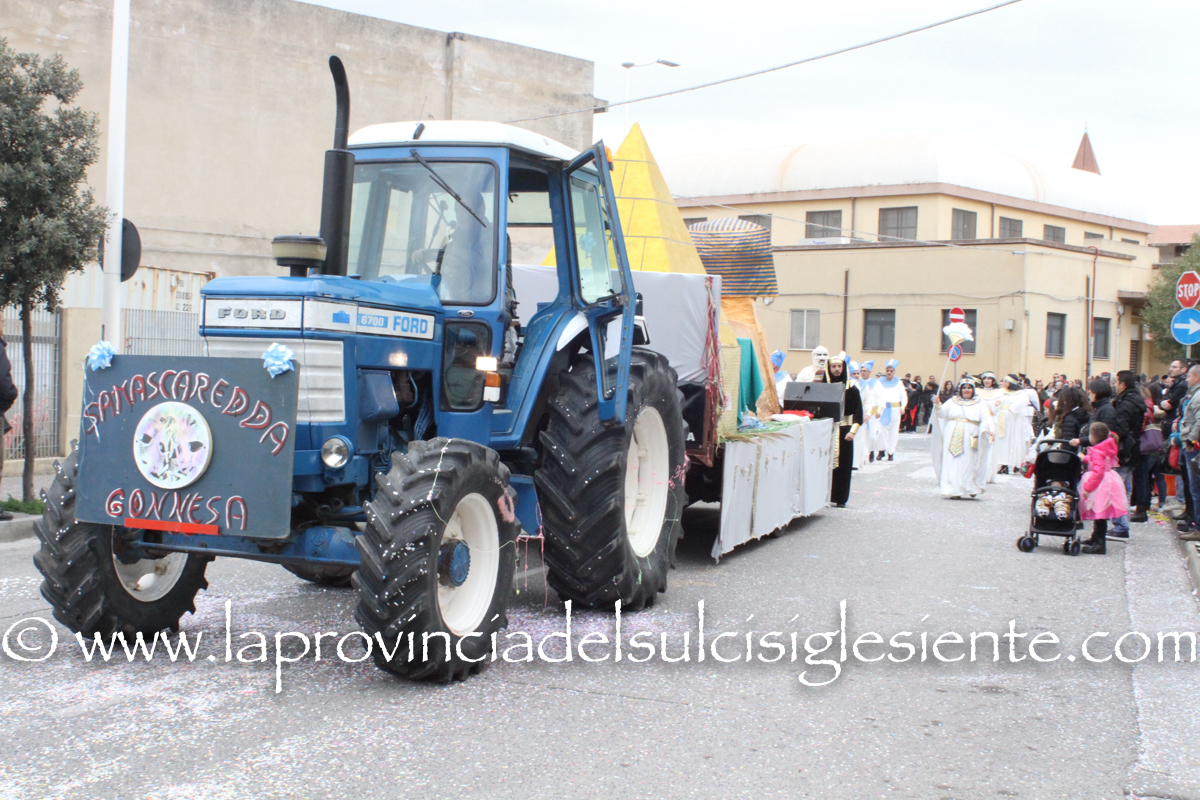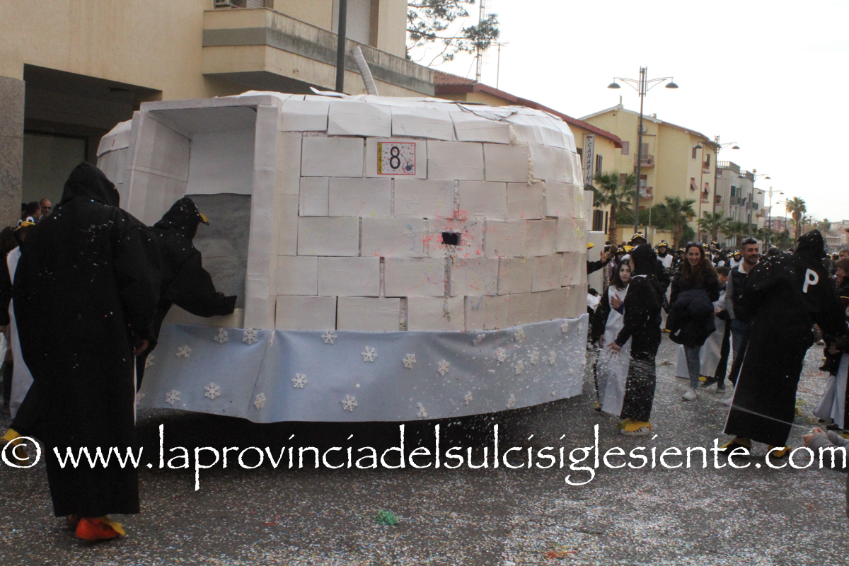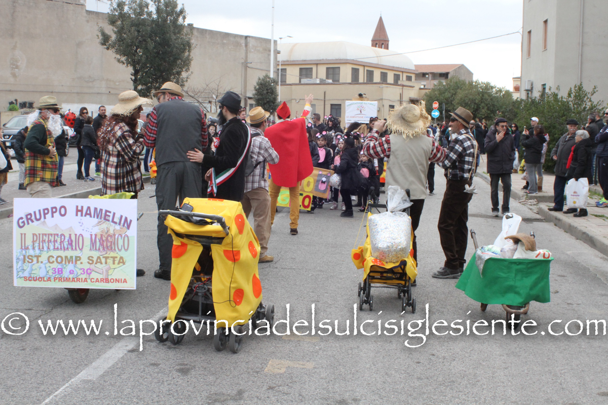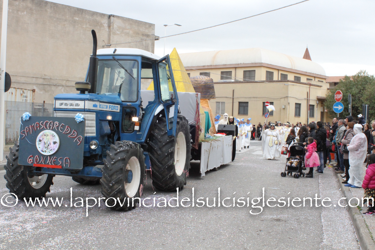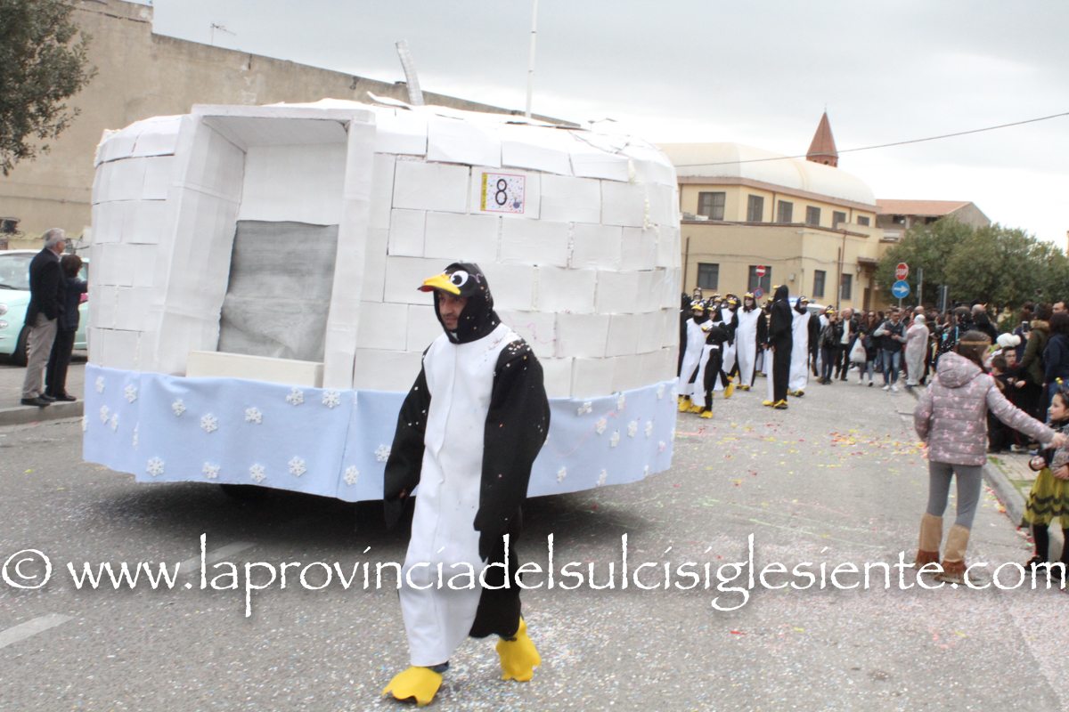 Pochi carri ma ugualmente grande festa, a Carbonia, per il Carnevale 2017. La crisi si è fatta sentire come e più di un anno fa e sono state solo otto le adesioni all’invito degli organizzatori, di carri e gruppi a piedi che si sono dati appuntamento in Piazza Ciusa per la partenza, avvenuta poco dopo le 15.00, con la partecipazione della banda musicale Vincenzo Bellini, numericamente penalizzata… dall’influenza.