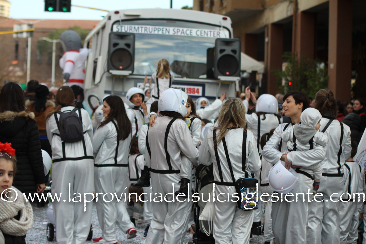 Bagno di folla, ieri e oggi, a Iglesias, per le due giornate conclusive del Carnevale Iglesiente 2017, iniziato sabato 11 febbraio. Migliaia di persone hanno partecipato alla sfilata, partita da via Pacinotti e sviluppatasi attraverso Corso Colombo, Via Crocifisso, Via Torino, Via Veneto, Via Piazza Mercato, Via Gramsci, Piazza Sella, Via Garibaldi, Via Antas, Via Valverde, con arrivo in Piazza Sella. Una grande festa di carri e maschere, conclusa come vuole la tradizione, con il Rogo di Norfieddu, nella scalinata di Piazza Sella (a cura del gruppo Folk Città di Iglesias). La serata, curata da Stardust events, si è conclusa con l’animazione del Dj Ruido.