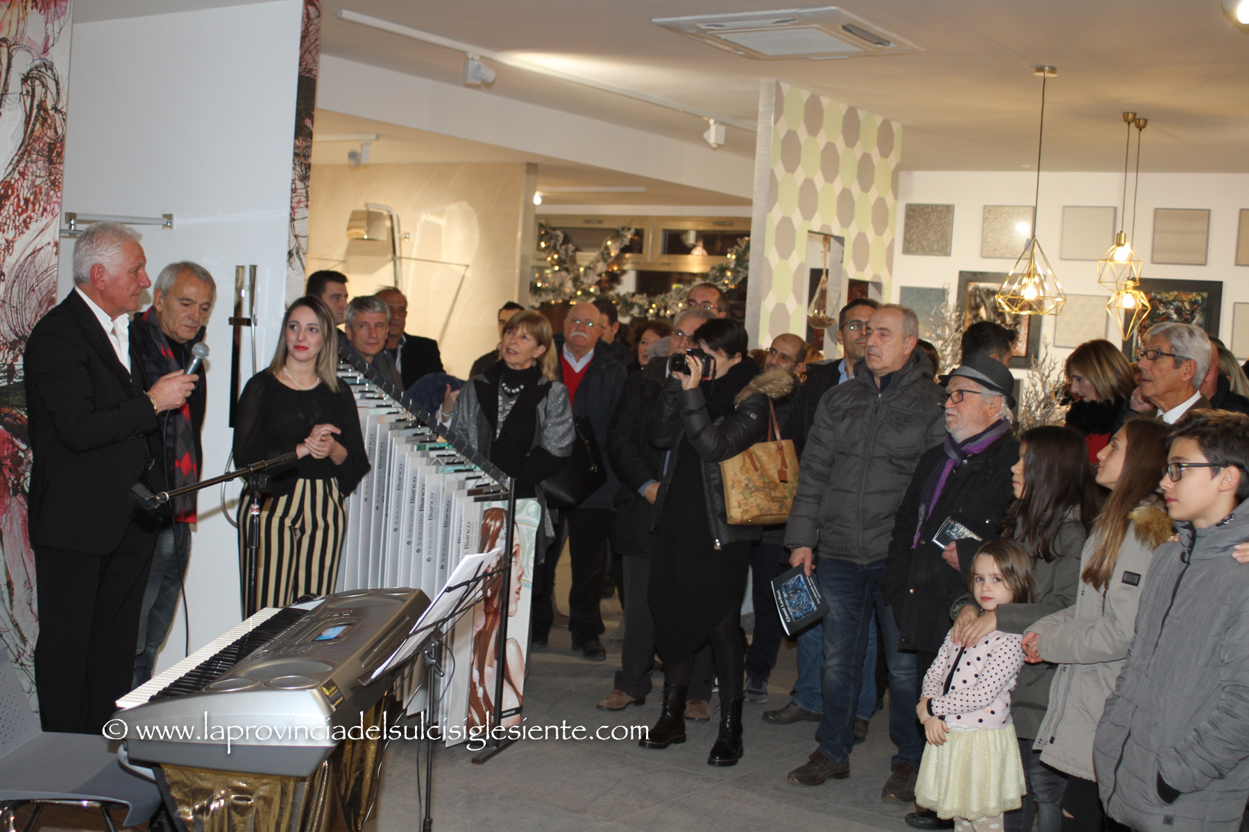 E’ stata inaugurata sabato sera, nella nuova sala espositiva dello Show Room Ellegi Crea, in via Roma, a Carbonia, la mostra del pittore autodidatta carboniense Gianni Lardieri. A tagliare il nastro inaugurale, dopo la breve presentazione della serata fatta da Ilenia Lampis, titolare dello Show Room Ellegi Crea, è stata Paola Massidda, sindaco di Carbonia, presenti anche alcuni assessori, tra i quali la titolare della Cultura Sabrina Sabiu. La serata artistica è stata arricchita da una degustazione dei vini pregiati della Cantina Santadi e dalla voce della cantante Raffaella Bandiera, accompagnata dal gruppo corale Silver Voice.