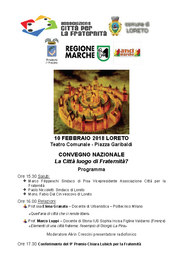 La cerimonia di premiazione si svolge a Loreto nel corso del convegno nazionale “La Città luogo di Fraternità?”.