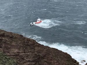 L’allarme è stato lanciato da alcuni ciclisti che si trovavano sulla scogliera ed hanno avvisato la Capitaneria di Porto di Cagliari. Sul punto sono state inviate un’unità navale della Guardia Costiera ed una pattuglia via terra, rispettivamente dagli Uffici Circondariali marittimi di Carloforte e Portoscuso, che alle ore 11.30 circa sono riuscite ad individuare il gommone che si trovava in balia delle onde a causa del forte vento di maestrale.