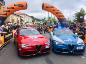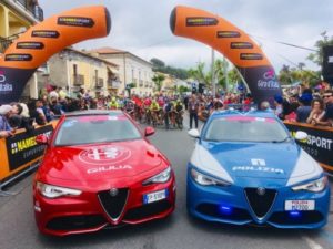 Il marchio Alfa Romeo è per la prima volta auto ufficiale del Giro d’Italia con una flotta di auto che accompagnano gli atleti in gara lungo tutta la lunghezza del percorso. Tra le vetture spicca la Giulia Veloce equipaggiata con il propulsore 2.2 Turbo Diesel da 210 CV abbinato alla trasmissione automatica AT8 e alla trazione integrale Q4. La Giulia Veloce si fregia di un nome evocativo e glorioso della tradizione Alfa Romeo: infatti, la denominazione “Veloce” nacque nel 1956 con il modello Giulietta e da sessant’anni identifica le versioni più sportive e distintive del Biscione. Vetture dunque perfettamente a proprio agio in un contesto emozionante e competitivo come quello del Giro d’Italia.