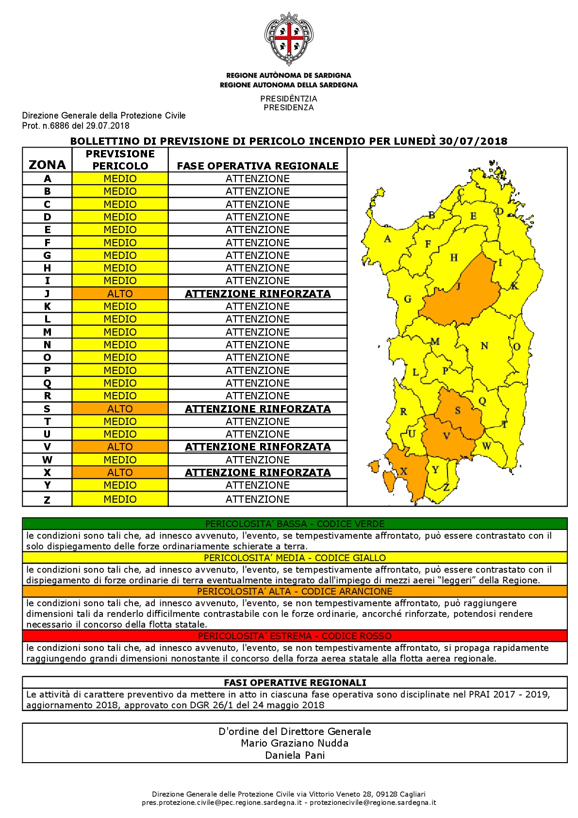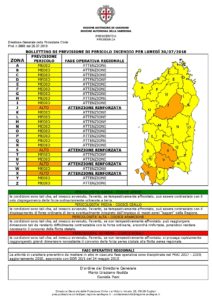 La Protezione Civile della Regione Sardegna ha emesso un bollettino di previsione di pericolo incendi valido per la giornata di oggi, lunedì 30 luglio.