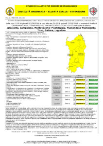 Nuovo bollettino di criticità ordinaria, allerta di colore giallo per rischio idrogeologico, per la giornata di domani, dalle 12.00 alle 21.00, esteso a tutta la Sardegna.