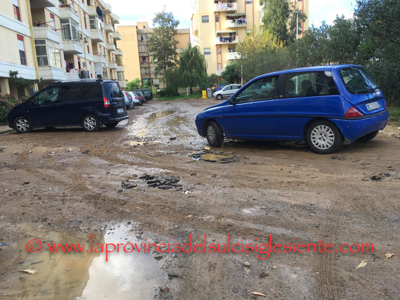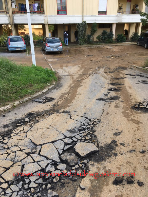 Il nuovo violento acquazzone abbattutosi ieri su Carbonia, ha creato notevoli disagi in varie zone della città, in particolare in quelle già colpite nel corso di questo incredibile autunno 2018. Tra queste vi è la zona dei palazzi Area di via Ospedale, dove i disagi sono stati particolarmente pesanti per i residenti e l’acqua ha provocato danni cui occorrerà porre rimedio. E’ il caso dei piazzali e della strada d’accesso del quartiere popolare alla periferia della città, sulla quale si sono creati vistosi cedimenti e la sede stradale è ormai quasi intransitabile.