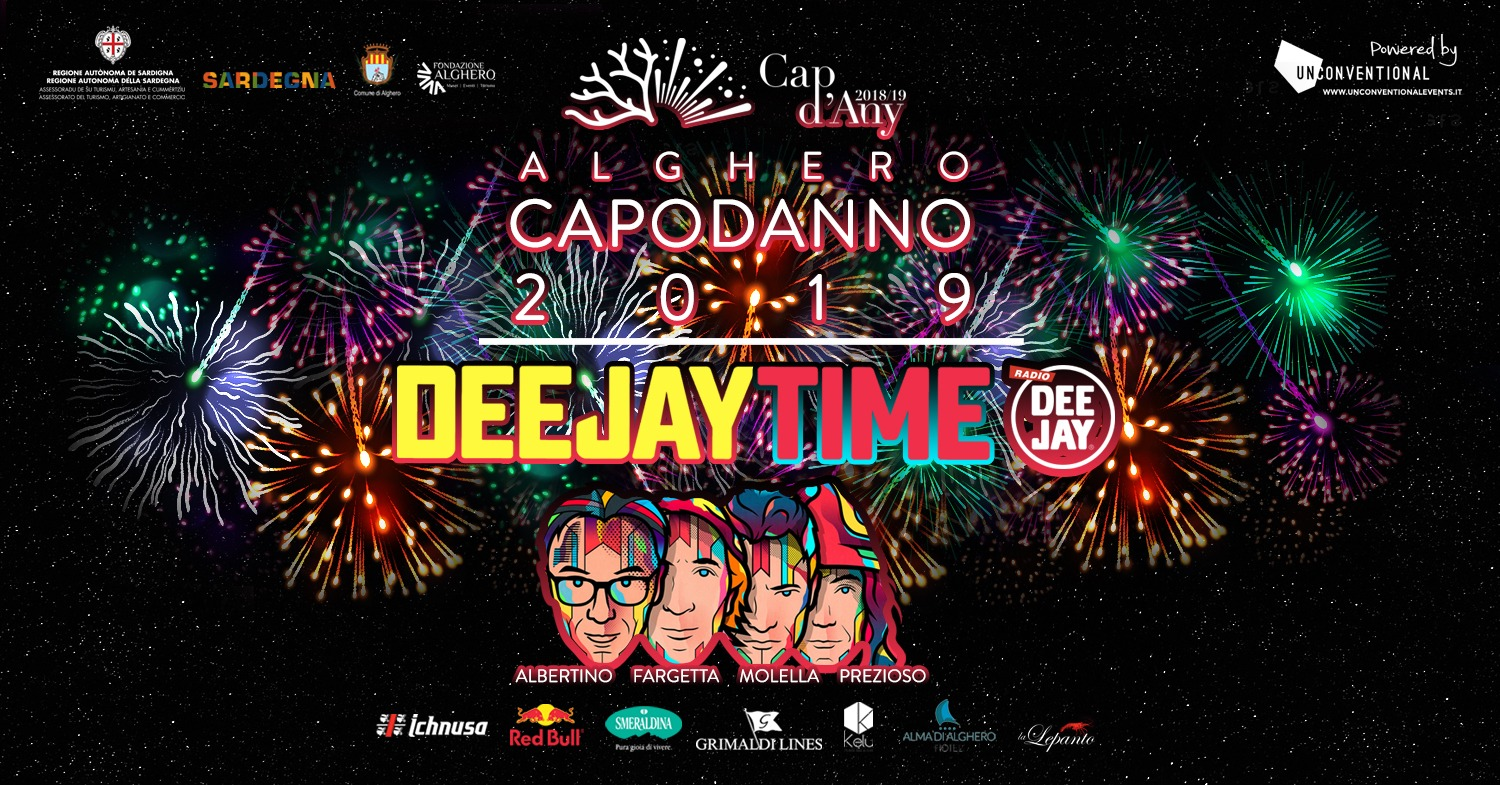 Le colonne portati ovviamente sono loro, i quattro dj più famosi d’Italia ed il loro Deejay Time – Reunion. Albertino, Prezioso, Fargetta e Molella portano in scena la propria storia, i brani più rappresentativi della loro lunga carriera in una sorta di “the best of” di ciò che è stata la scena musicale italiana degli ultimi 30 anni. Lo spettacolo va in scena su un palco ipertecnologico in cui giganteggia, sia a fondale che davanti alle consolle, un ledwall di ultimissima generazione. Ai controller dei video il pioniere italiano dei visual show, Glamnoise. Tra l’artista bresciano e i quattro storici dj è stato amore a prima vista, e dal 2014 in poi è Glamnoise a occuparsi di tutta la produzione video del Deejay Time, sia lo sviluppo del concept che il mix in tempo reale per uno show in cui musica e arte visiva diventano una cosa sola. A questo mix perfetto si aggiungono tutta una serie di effetti speciali costruiti per lasciare il pubblico a bocca aperta. Dopo il tradizionale spettacolo pirotecnico con cui Alghero saluterà il nuovo anno saranno geyser colorati, fiamme sceniche, spara coriandoli e altri effetti speciali a creare una scenografia spettacolare. L’opening act è stato affidato a Milla, infatti, sarà la dj ferrarese ad accompagnare il pubblico fino al countdown del nuovo anno. Stella nascente tra i selecter italiani Milla è l’artista più amata negli ambienti LGBT nazionali e d’oltre confine, tra cui il Circuit di Barcellona.