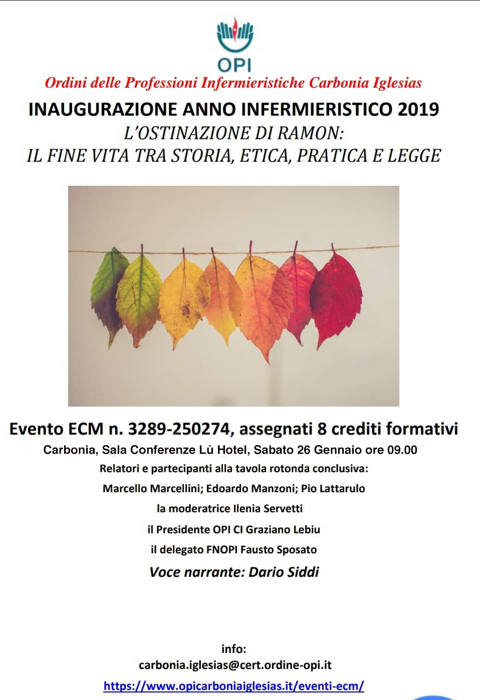 Sabato 26 gennaio nella sala conferenze del Lù Hotel, a Carbonia, verrà inaugurato l’anno infermieristico 2019.