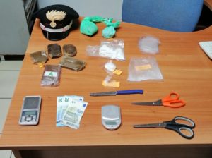 – un coltello a serramanico usato per tagliare lo stupefacente, materiali utili al confezionamento circa 50 € in banconote, ritenuto allo stato provento illecito.