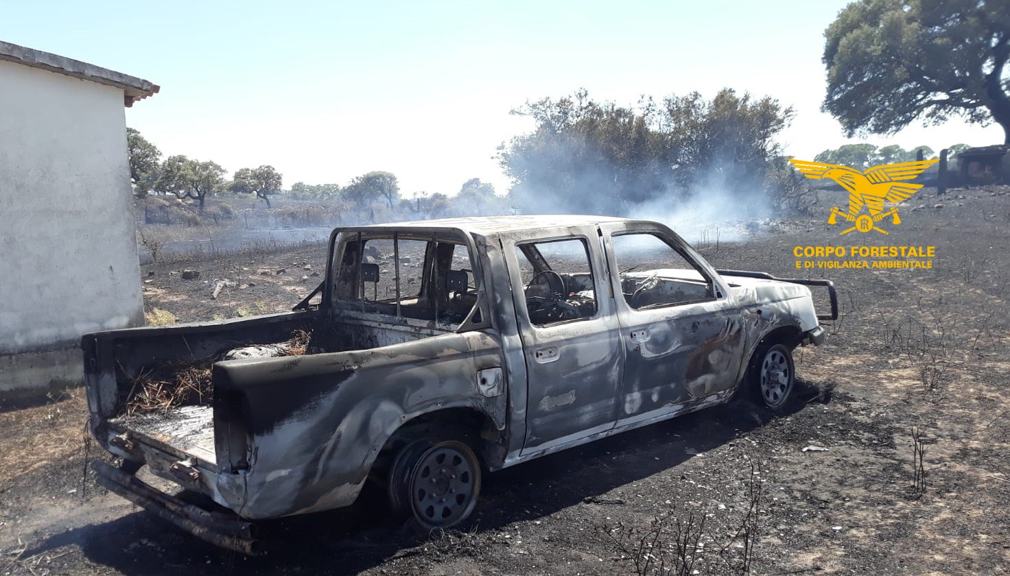 A Berchidda, in località San Salvatore, hanno operato un Canadair da Alghero, due elicotteri ed il Super Puma del Corpo forestale provenienti dalle basi di Anela, Limbara e Fenosu. Le fiamme hanno percorso oltre 5 ettari distruggendo anche un fienile ed un automezzo. L’incendio è attualmente in fase di bonifica da parte del personale del Corpo forestale con il supporto di squadre di barracelli, FoReSTAS, volontari di Protezione civile e Vigili del fuoco. Nelle foto il fienile e l’automezzo distrutti.