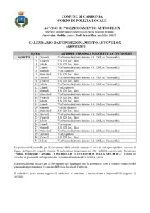 Il calendario delle postazioni autovelox del comune di Carbonia per il mese di agosto 2019.