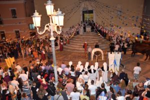 Passano i decenni, ma la festa di Sant’Isidoro non perde il suo fascino e la sua attrattiva. A Teulada, “Su Santu Gloriosu” è ancora talmente amato che persino i giovani dalle idee lanciate verso la modernità più spinta si “piegano” volentieri a condividere e celebrare una tradizione divenuta focus identitario nella secolare storia della comunità. Una tradizione che vede un lungo andare della sua effige dalla chiesa parrocchiale fino alla chiesetta campestre a Lui intitolata nella campagna di Tuerra, un posto bellissimo e suggestivo, che sa di arcaico e di mistero, dove, se ascolti attentamente, senti il silenzio parlare delle genti antiche che in quel luogo abitarono, conducendo una esistenza dura, condizionata dai ritmi faticosi che la natura imponeva a chi alla terra affidava la propria sopravvivenza. Un luogo che diresti magico, proprio per il silenzio che lo avvolge, rotto solo dallo stormire del vento tra gli alberi o dal richiamo degli uccelli in volo, che a volte paiono gridare il proprio disappunto per presenze che disturbino la loro incantata solitudine. Una solitudine che di forza si rompe per pochi giorni l’anno, quando frotte di devoti fedeli accorrono dal paese, sulle orme di coloro che, in primavera, solevano invocare un buon raccolto e ringraziare della sua abbondanza alla fine dell’estate. Ed accorrono a piedi, facendosi coraggio con antichi canti di osanna, o nelle traccas che, tutte ornate di fiori, di spighe e di pani dalle forme più svariate, aprono la strada al cocchio nel quale il Santo compie il suo cammino, rinnovando il rito antichissimo che lo vede intercedere nella benedizione delle campagne. Una piacevole occasione di incontro per tutta la comunità, un modo di rinverdire amicizia e confidenza, di provare a se stessi ed agli altri quanto ancora ci si senta bene ed a proprio agio nello stringersi tutti intorno a quella effige che risveglia sentimenti di attaccamento profondo alle proprie radici, in una cerimonia che vuole essere celebrazione di ricordi e di affetti, ma anche revival di costumi ancestrali. Un riandare, dunque, della memoria collettiva a tempi lontani, testimoniati dalla poderosa torre sorta a difesa di genti che lentamente, giorno dopo giorno, pietra su pietra, si ergevano in comunità, traendo di che vivere proprio dalla campagna tutt’intorno, sulla quale unicamente il sole, il vento e l’acqua imponevano le leggi della semina e dei raccolti. Una comunità che cercava e trovava consolazione e sostegno alla fatica proprio nel piccolo tempio che con riconoscente devozione aveva scelto di dedicare ad un Santo venuto da lontano, portando con sé messaggi di speranza e di fiducia nel futuro. Sant’Isidoro protettore della campagna e del lavoro che dalla campagna trae sostentamento e vita diventava, dunque, un emblema di coraggio e di forza spirituale, mai disgiunti da una profonda fede nell’Onnipotente. Ed anche se la Storia ha deciso, nei secoli, un destino di abbandono e di oblio per quel primo villaggio, sopravvivono e si ripetono ancora oggi gli antichi riti legati alla fatica nei campi, in cerimonie che ne rinnovano il fascino ed il vigore coinvolgente, mai artificiose, mai mera ripetizione di cliché scontati e banali, ma sempre espressione di fede e di amore autentico per la propria terra. E, non meno, di fedeltà ad una tradizione che anche quest’anno ha avuto di che rendere Teulada un paese splendidamente vestito a festa, in una esplosione di colori, di musica, di danze e canti che ben hanno fatto da cornice alla fantastica processione dei tanti gruppi in costume tradizionale, unico nella sua bellezza quello di Teulada, con cui si è voluto rendere trionfale il ritorno del Santo dal suo rifugio campestre. Una festa popolare che delle feste popolari ha espresso, anche stavolta, i valori più autentici, in un abbraccio corale che intende dar voce all’urgenza di vicinanza e di collaborazione all’origine di ogni buona comunità.