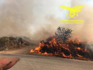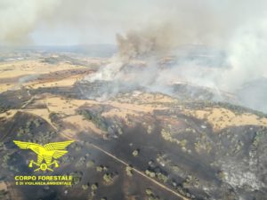A Bitti, in località “Tidiriche”, dove sono intervenuti 5 elicotteri del Corpo forestale provenienti dalle basi elicotteri di Sorgono, San Cosimo, Limbara, Alà dei Sardi, Anele, e 3 Canadair dalla base di Alghero e 1 Canadair da Ciampino. Le operazioni di spegnimento sono dirette dal Corpo forestale della stazione di Bitti, coadiuvata da squadre di Forestas, da i VVF e dai volontari di protezione civile. L’incendio ha bruciato circa 1000 ettari di sughereta e pascolo. Un fronte si è avvicinato anche al centro abitato. Le operazioni sono ancora in corso. Sono previste autocolonne del CFVA da Sassari e Oristano per presidiare la zona durante rutta la notte e per il giorno di domani. Da segnalare un malore che ha colto un appartenente al Corpo forestale durate le operazioni di spegnimento.