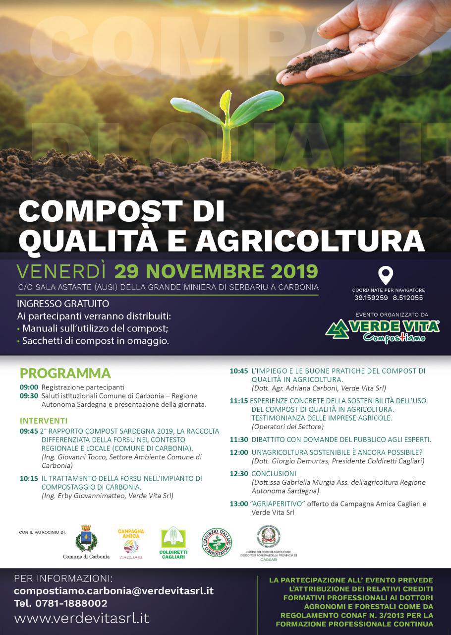 L’impiego del compost come ammendante e fertilizzante rientra nell’ambito di una agricoltura sostenibile che prevede la valorizzazione di risorse residuali ed il contemporaneo miglioramento della fertilità dei suoli, in particolare del loro contenuto di sostanza organica. La conoscenza dei benefici e delle tecniche di uso del compost di qualità risulta fondamentale per gli operatori agricoli che sono i principali fruitori di questo prodotto. Dallo scorso mese di gennaio, presso l’impianto di compostaggio cittadino di Sa Terredda, viene commercializzato un ammendante compostato misto, meglio noto come “compost”. Il prodotto è ottenuto dalla lavorazione della frazione dei rifiuti umida e del verde – sfalci e potature – che vengono conferiti dai cittadini di 23 Comuni del Sulcis Iglesiente nell’impianto di Sa Terredda, gestito dalla società Verde Vita Srl.