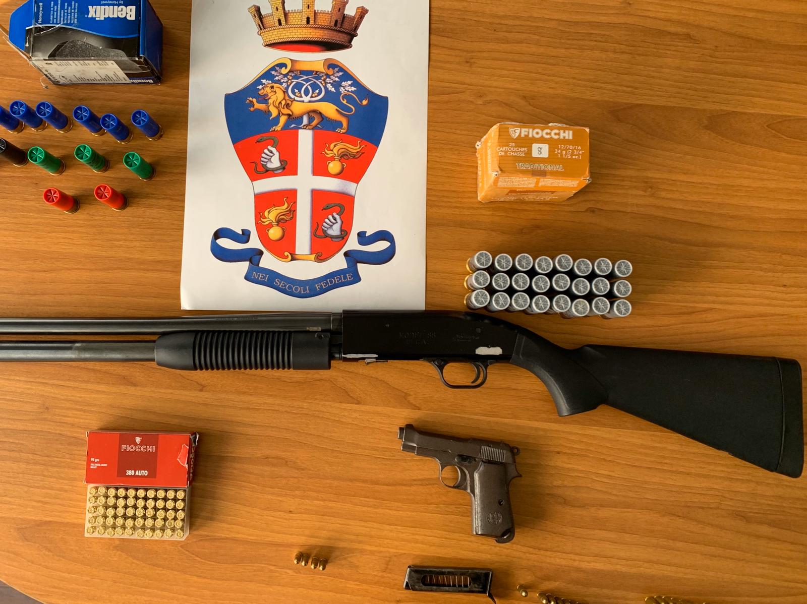 All’interno è stato rinvenuto un fucile pompa, con matricola abrasa, ed altre cartucce per fucile e pistola.