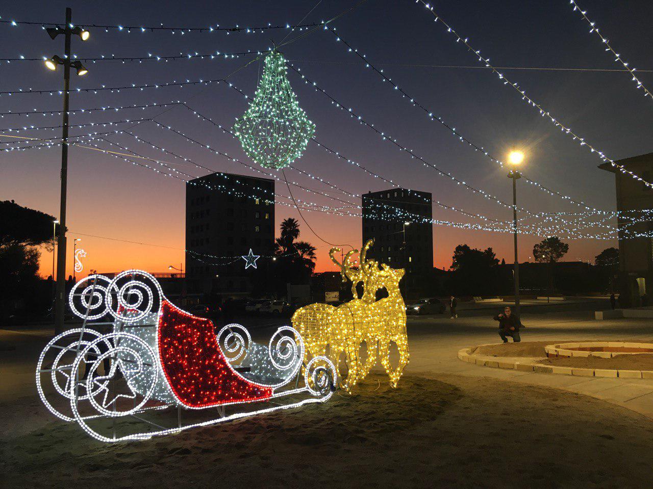 La slitta con le renne in piazza Roma è l’attrattiva del Natale di Carbonia.