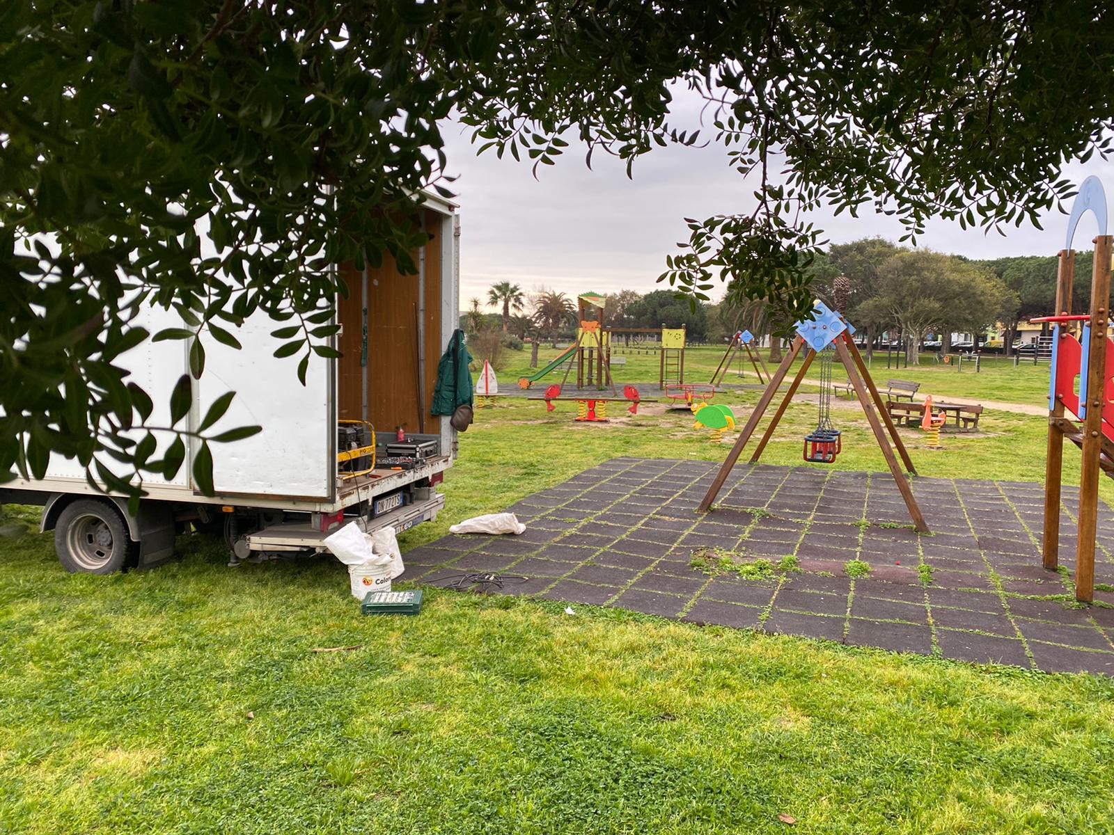 Sono iniziati oggi, a Sant’Antioco, i lavori riqualificazione dell’area giochi del Parco Giardino