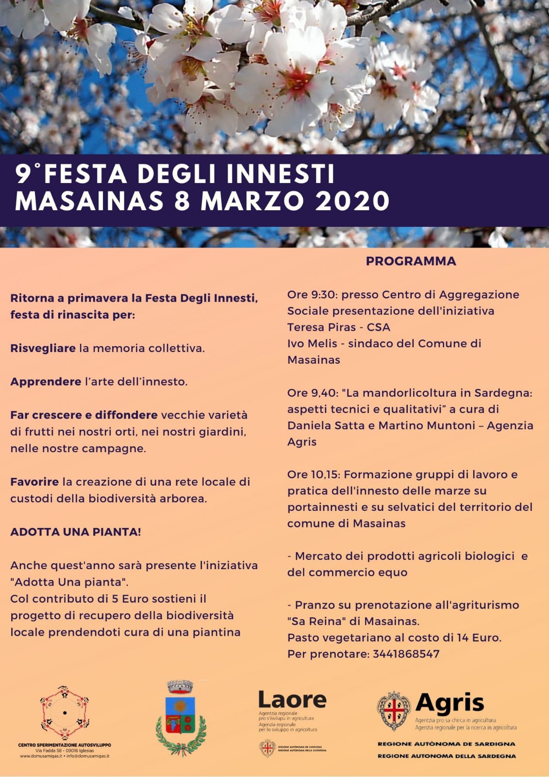 L’evento è realizzato dal Centro Sperimentazione Autosviluppo ed il comune di Masainas, in collaborazione con le Agenzie regionali AGRIS e LAORE.
