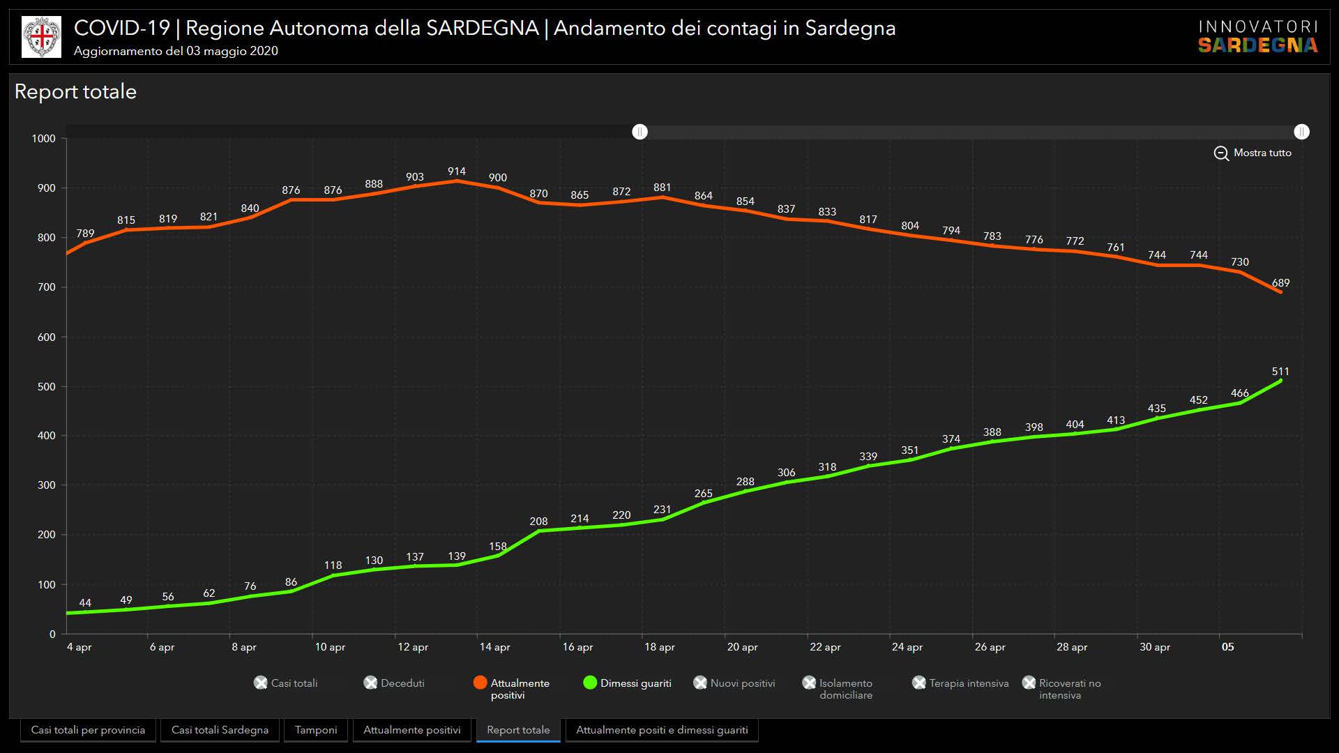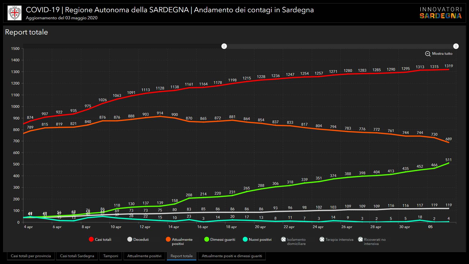 Sono 4 i nuovi casi positivi al Covid-19 riscontrati oggi in Sardegna, su 747 tamponi eseguiti. Nessun decesso.