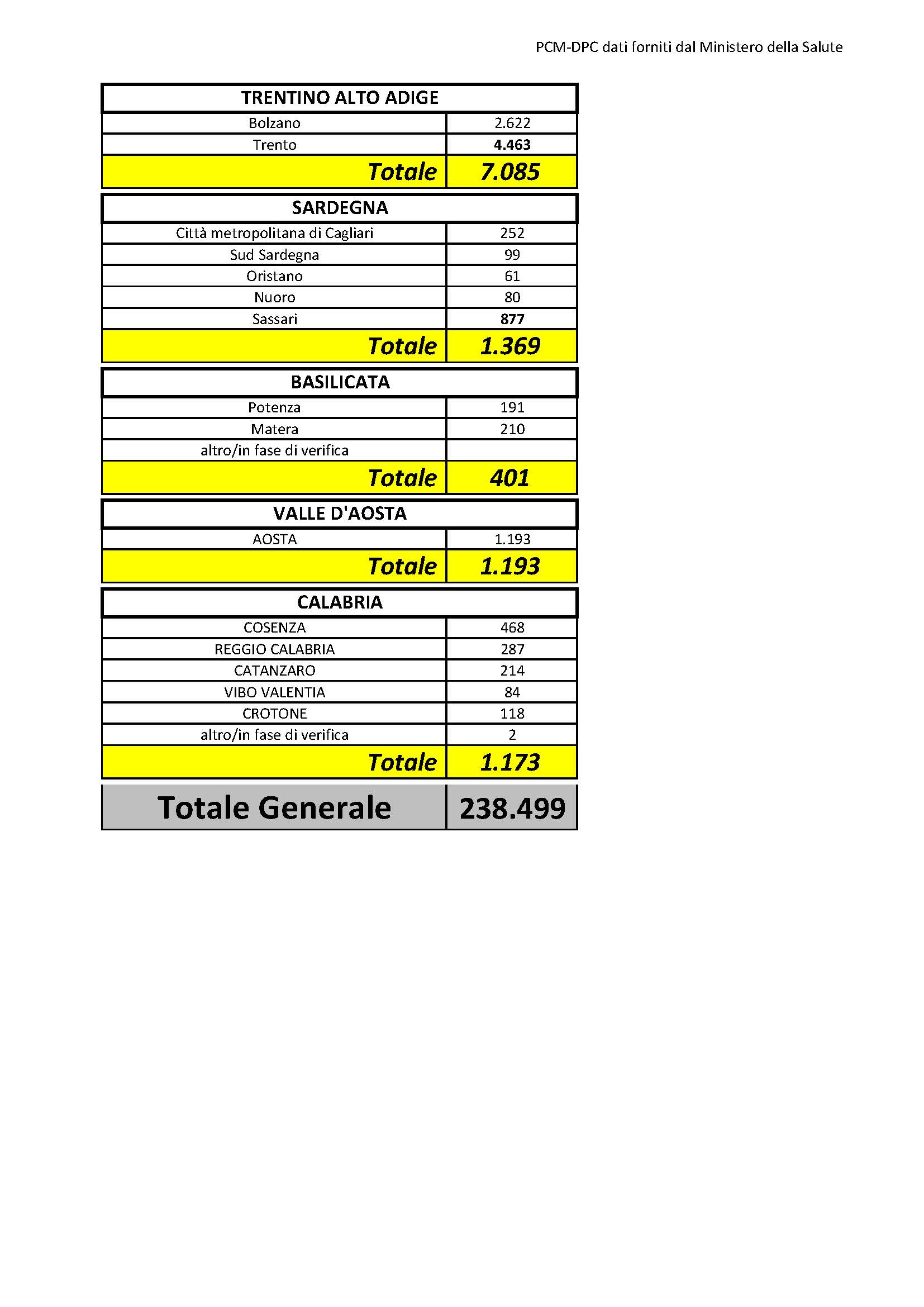 Sul territorio, dei 1.369 casi positivi complessivamente accertati, 252 sono stati rilevati nella Città Metropolitana di Cagliari, 99 nel Sud Sardegna, 61 a Oristano, 80 a Nuoro, 877 a Sassari.
