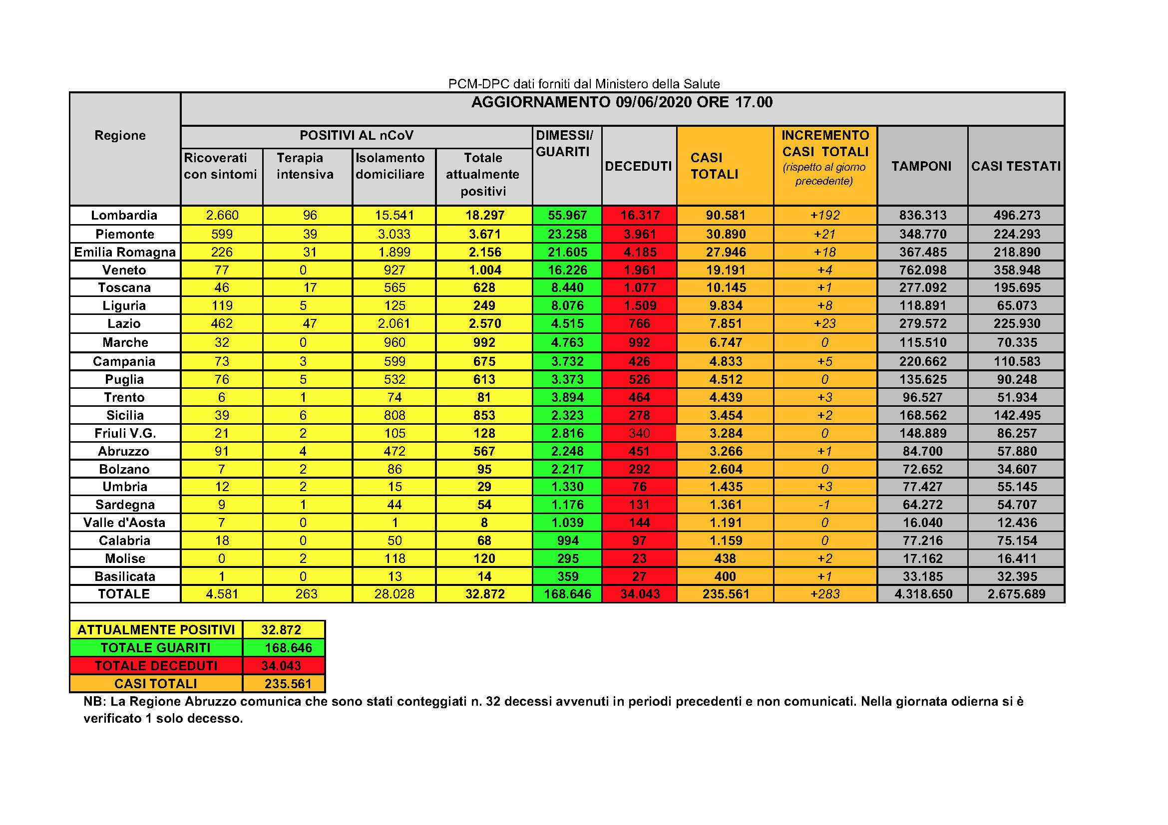 Nessun nuovo caso positivo al Covid-19 e nessun decesso anche nelle ultime 24 ore, in Sardegna