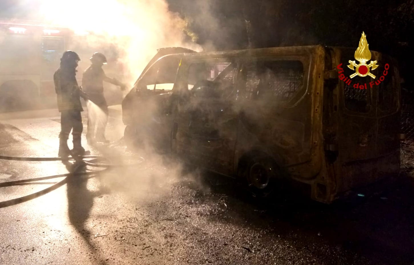 La notte scorsa, intorno alle 2.30 circa, la sala operativa del Comando dei vigili del fuoco ha ricevuto la richiesta per l’incendio di un furgone in sosta nella via Ugo La Malfa, nel comune di Decomoputzu. Sul posto è stata inviata la squadra di pronto intervento “5A” del distaccamento vigili del fuoco di Iglesias, che con un APS (autopompa serbatoio) e cinque operatori, hanno spento le fiamme, messo in sicurezza l’area circostante e la sede stradale dove il veicolo in sosta è stato completamente distrutto dalle fiamme.