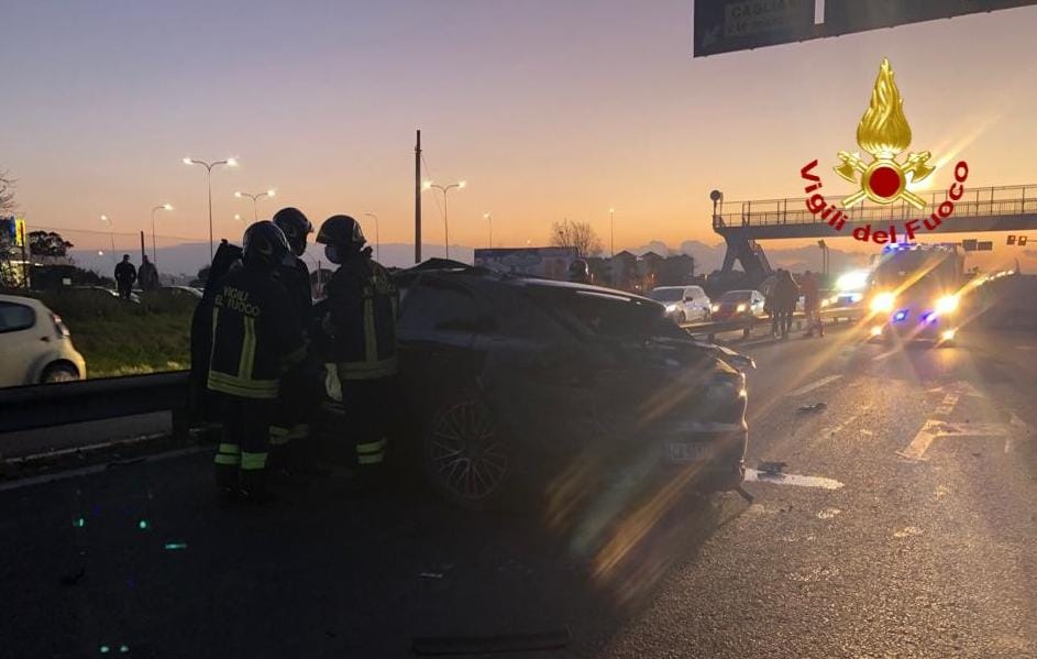 SS 554, bivio di Selargius: una Porsche è finita contro il guard rail, completamente distrutta. Il conducente, Andrea Cossu, ex calciatore oggi dirigente del Cagliari Calcio ricoverato in codice rosso