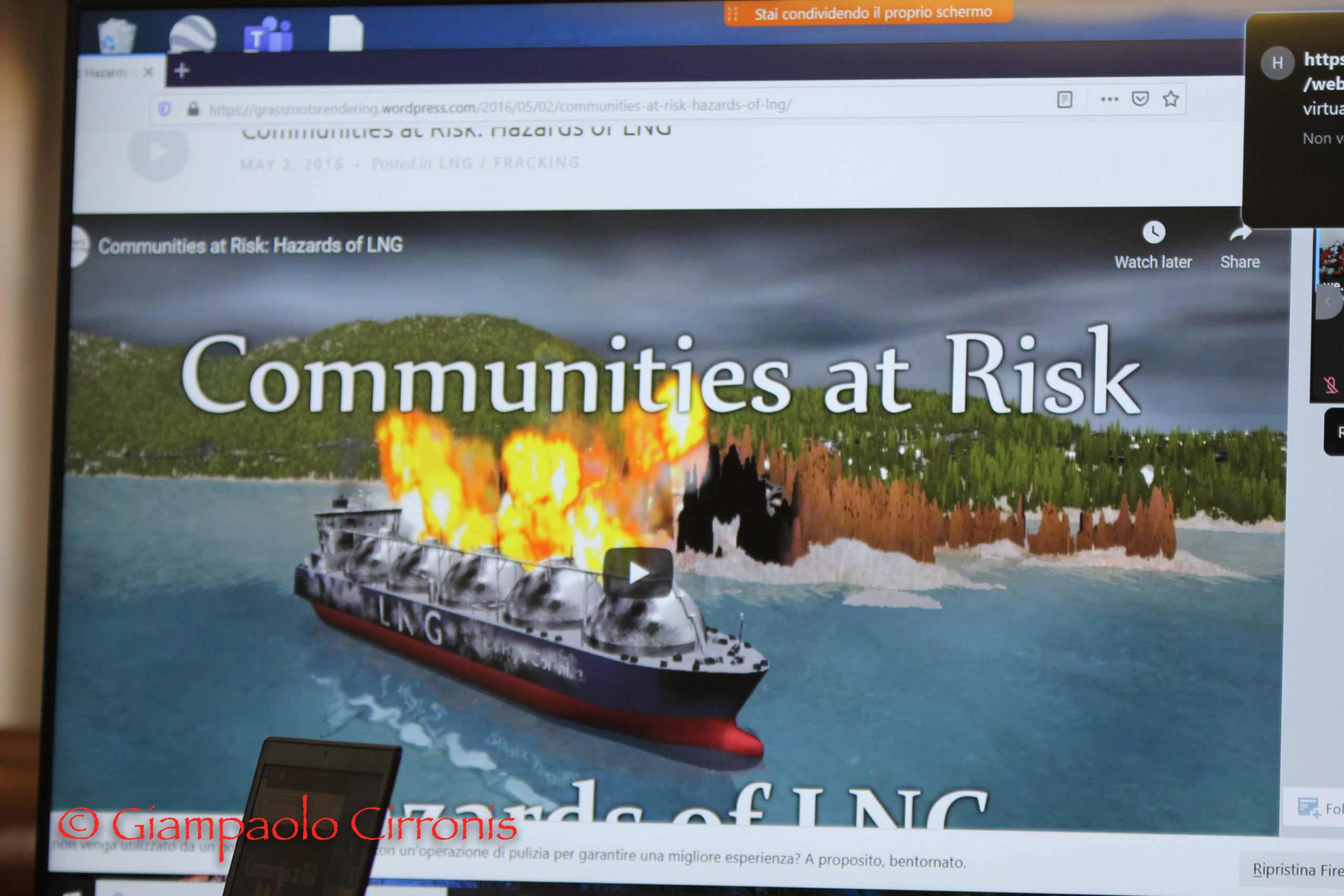 La sala consiliare del comune di Portoscuso, ha ospitato venerdì sera un incontro organizzato da Legambiente Sardegna sul tema: “Il Dpcm ed il terminale GNL previsto a Portovesme, una questione nazionale”. Nel corso dei lavori è stato proiettato il video “Comunità a rischio, i pericoli del GNL”.