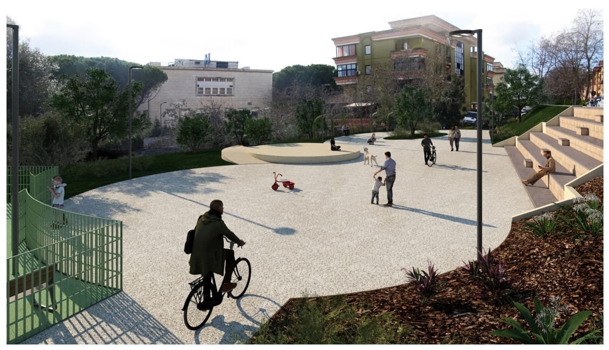 In una fase successiva si prevede il rifacimento dei marciapiedi che contornano la piazza e la realizzazione di un’area giochi.