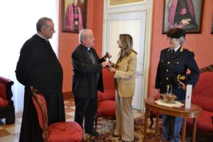 La consegna è avvenuta nell’Episcopio di Iglesias, presente una rappresentanza del Commissariato di Pubblica Sicurezza di Iglesias ed il Cappellano provinciale della Polizia di Stato, don Eugenio Cocco.