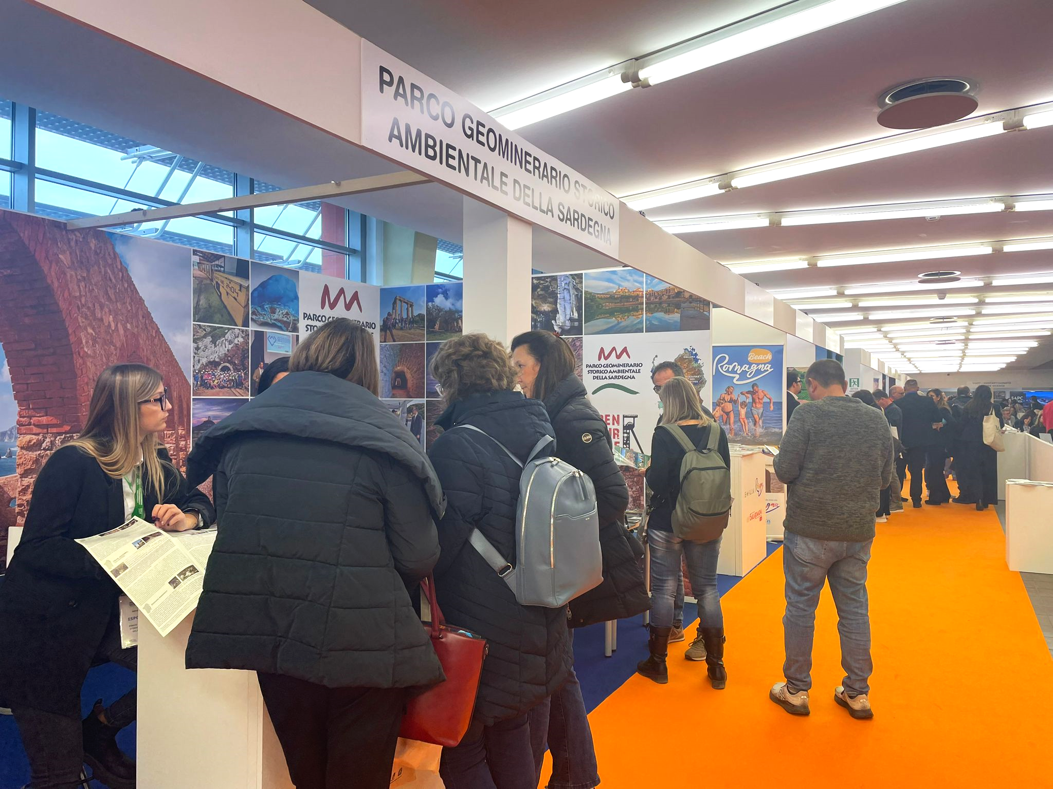 All’interno dello spazio espositivo, che sta riscuotendo grande interesse e registrando molti contatti tra i visitatori della Bitesp, ospita rappresentanti dei comuni di Buggerru e Pula, la Fondazione Pula Cultura, il Consorzio Turistico dell’Iglesiente di Iglesias e il Consorzio Natura Viva di Domusnovas, seguendo un approccio di promozione turistica diffusa e condivisa con le aree ed i comuni di appartenenza del Parco Geominerario, nell’ottica di una crescita comune.