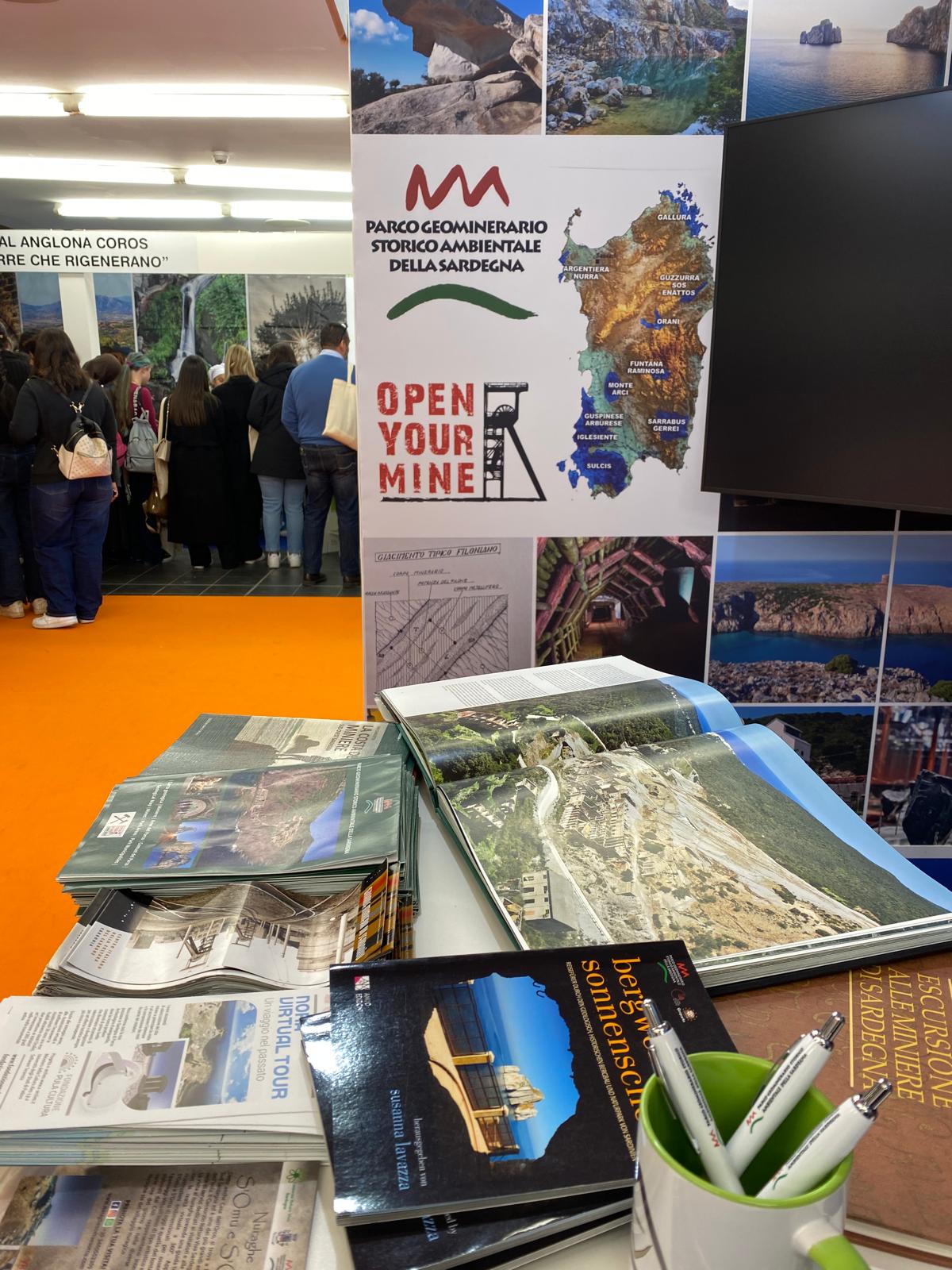 Presso l’area fieristica della Stazione Marittima, è presente tra gli espositori con un proprio stand in cui evidenzia, con documentazione, gadgets e materiale informativo le peculiarità storiche, antropologiche e ambientali legate al mondo geominerario sardo insieme alle attività in essere e quelle in programma, tra cui l’iniziativa di riscoperta sostenibile dei siti minerari Open Your Mine.