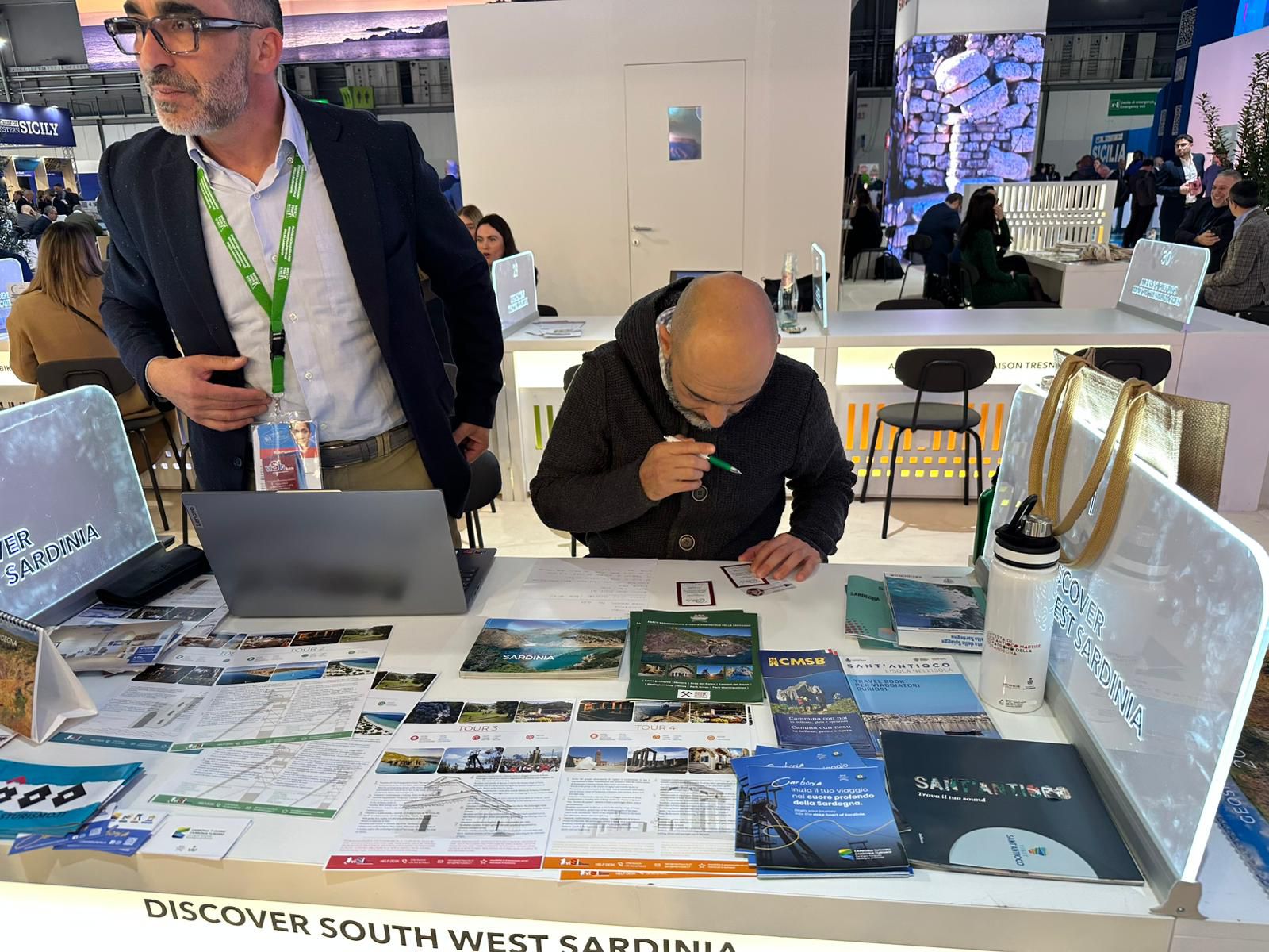 Il sindaco di Carbonia Pietro Morittu e l’assessore del Turismo Michele Stivaletta alla Fiera Internazionale del Turismo (BIT) di Milano
