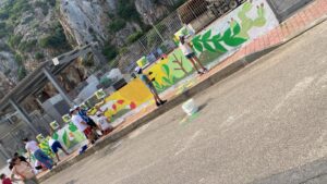 Una volta giunti nell’area, i bambini, guidati dagli educatori e dagli artisti, hanno realizzato un murales sulle pareti esterne dell’ecocentro. L’opera, colorata e ricca di significato, riporta la scritta “L’essenziale resta”, un messaggio che richiama all’attenzione e alla cura per ciò che davvero conta: la natura, il futuro e il nostro pianeta.