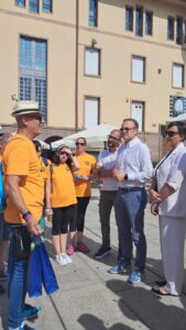 Anche l’Istituto di Istruzione Superiore G. M. Angioy ha partecipato attivamente predisponendo l’auditorium della scuola per accogliere la testimonianza dell’attivista viandante sotto gli occhi emozionati e attenti di più di 100 studentesse e studenti: «Le ragazze e i ragazzi dei corsi di Grafica e Comunicazione e di Informatica dell’Istituto Angioy hanno accolto oggi con emozione e interesse l’artivista Rosalba Castelli. L’Istituto ringrazia Rosalba poiché la sua sensibilità artistica e la profondità del messaggio hanno offerto ai nostri studenti e alle nostre studentesse spunti preziosi di riflessione e un’occasione autentica di crescita civile e personale», ha detto Teresa Florio, dirigente scolastica IIS G.M. Angioy.