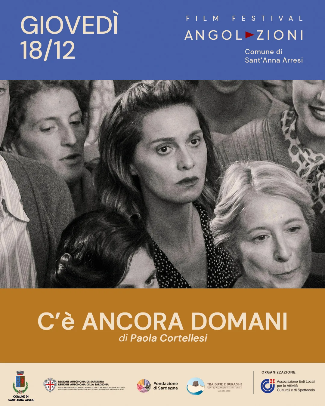 “Angolazioni 2025” è una rassegna cinematografica e culturale promossa dal comune di Sant’Anna Arresi, sostenuta dalla Regione Autonoma della Sardegna nell’ambito della Legge Regionale n. 15/2006, art. 15, dalla Fondazione di Sardegna e organizzata dall’Associazione Enti Locali per le Attività Culturali e dello Spettacolo.