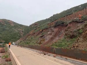 Proseguono i lavori di messa in sicurezza della SP 83, la strada per Nebida, a seguito del distacco di una parte del costone roccioso.
